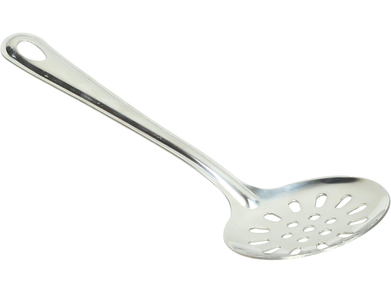 Naběračka s dírama průměr 7,5 a délka 8cm Boutique je vyrbena z nerezu, je malá a vhodná pro vyběrání například těstovín, masa, pytlíkůod čaje z hrnce apod. Její celkévá délka je 24 cm, průměr naběrátka je 7,5cm.