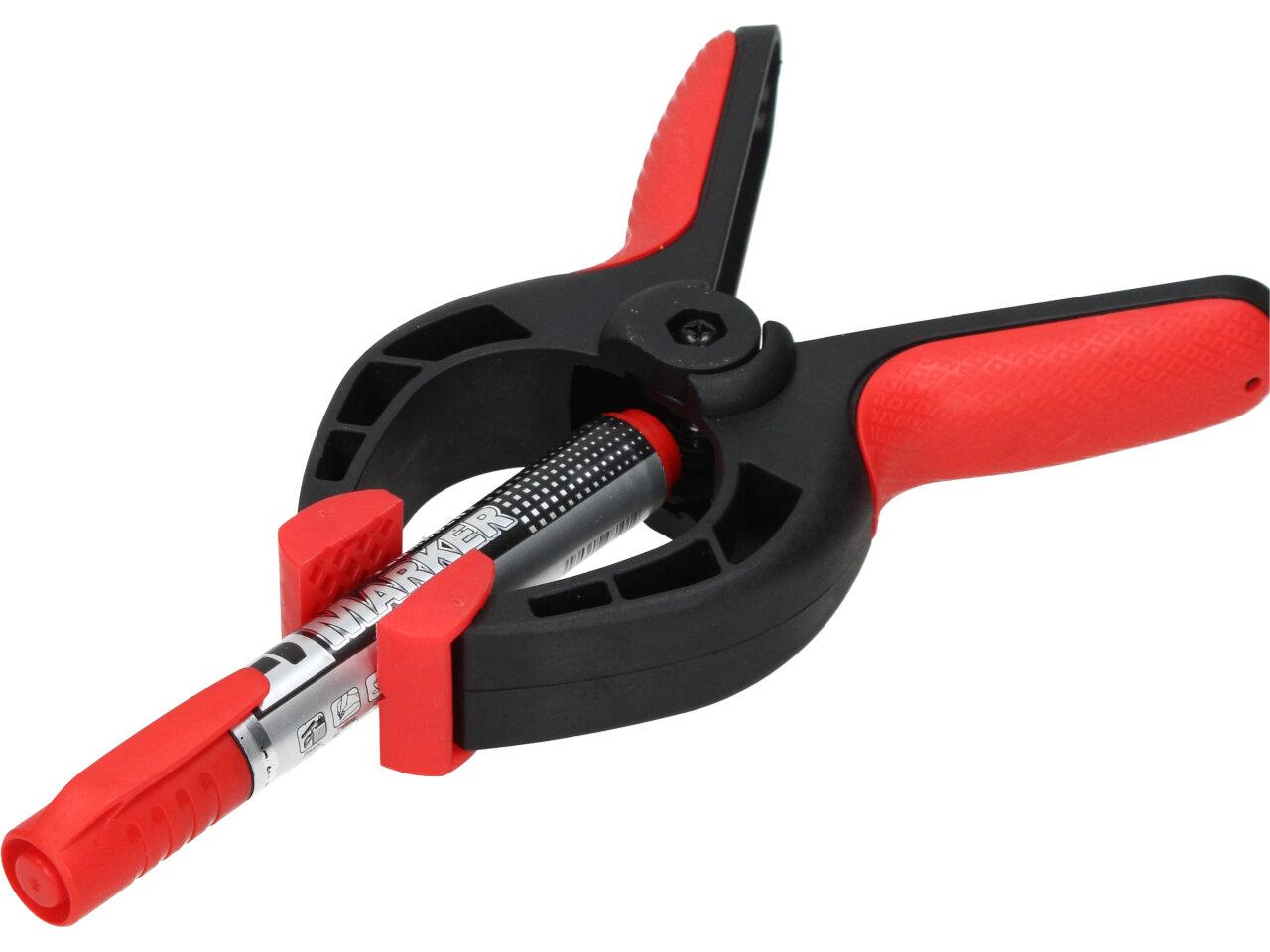 Má to smysl mít v nabídce — plastová svorka Svorka s pružinou plastová " - Silný a pevný stisk bez poškození povrchu předmětu, čelist kvalitně udrží ploché, tvarované, hranaté i kulaté předměty..