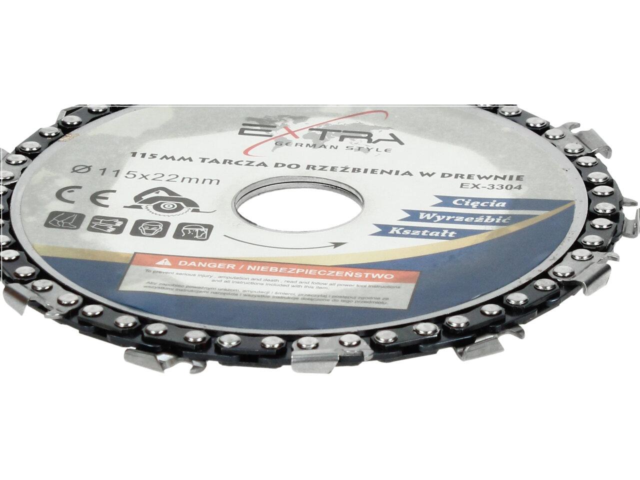 Řetězový řezný kotouč 115 x 22 mm by měl být v každé dílně. Řetěz se skládá z po sobě jdoucích levých a pravých zubů, které Vám pomůžou odříznout měkké i tvrdé dřevo, plast, led nebo tvrdou gumu. Lze s ním pracovat nejen v přímém směru ale i materiál velice lehce tvarovat. Nosný střed je vyroben z ocelového plechu, jehož obvod je opásán 19ti článkovým řetězem, který používá klasická motorová řetězová pila.