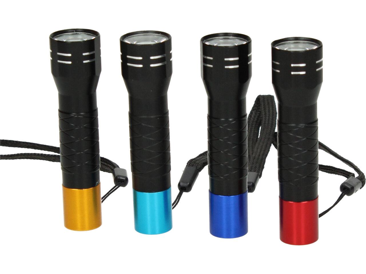 LED malá kovová baterka 8 cm klasického oválného tvaru je vyrobena z kvalitní slitiny aluminia. Baterka je pevná, nerozbytná, ale zároveň lehká do ruky. Baterka je napájena na jednu AAA baterii (baterie není součástí balení) 1,5 V. Svítilnu dodáváme ve čtyřech barvách: tmavě modrá, světle modrá, červená, oranžová. Baterka je vhodná na dětské tábory, rybaření, kempování, ale také poslouží, když vám vypadne proud v domácnosti. Baterku si můžete zacvaknout za opasek.