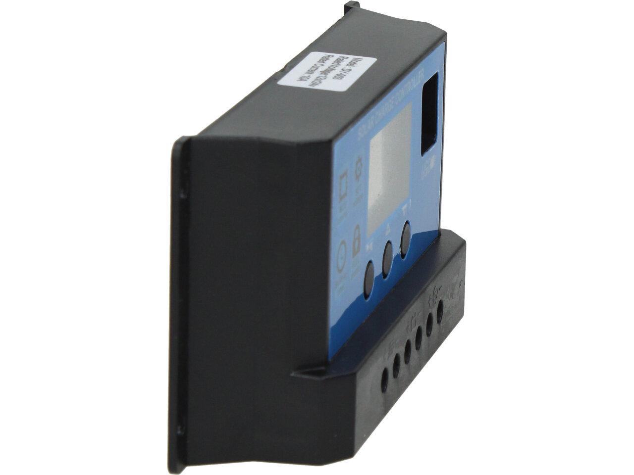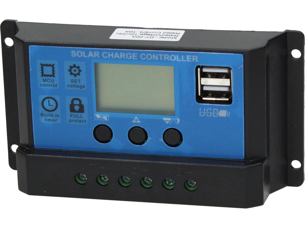PWM regulátor umožňuje nabíjení olověných baterií proudem až 10A a připojení FV panelů s výstupním napětím max. 25V. Je vybaven LCD displejem pro nastavení a zobrazení provozních parametrů. Regulátory jsou vhodné pro panely se shodným systémovým napětím jako je napětí baterie, jinak dochází ke ztrátám, kdy se část výkonu zmaří vlivem nevhodné V-A charakteristiky panelu.