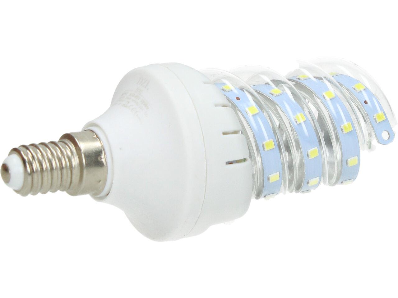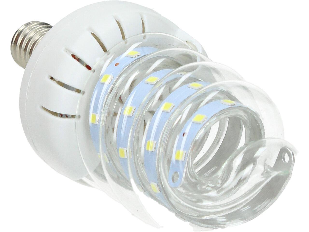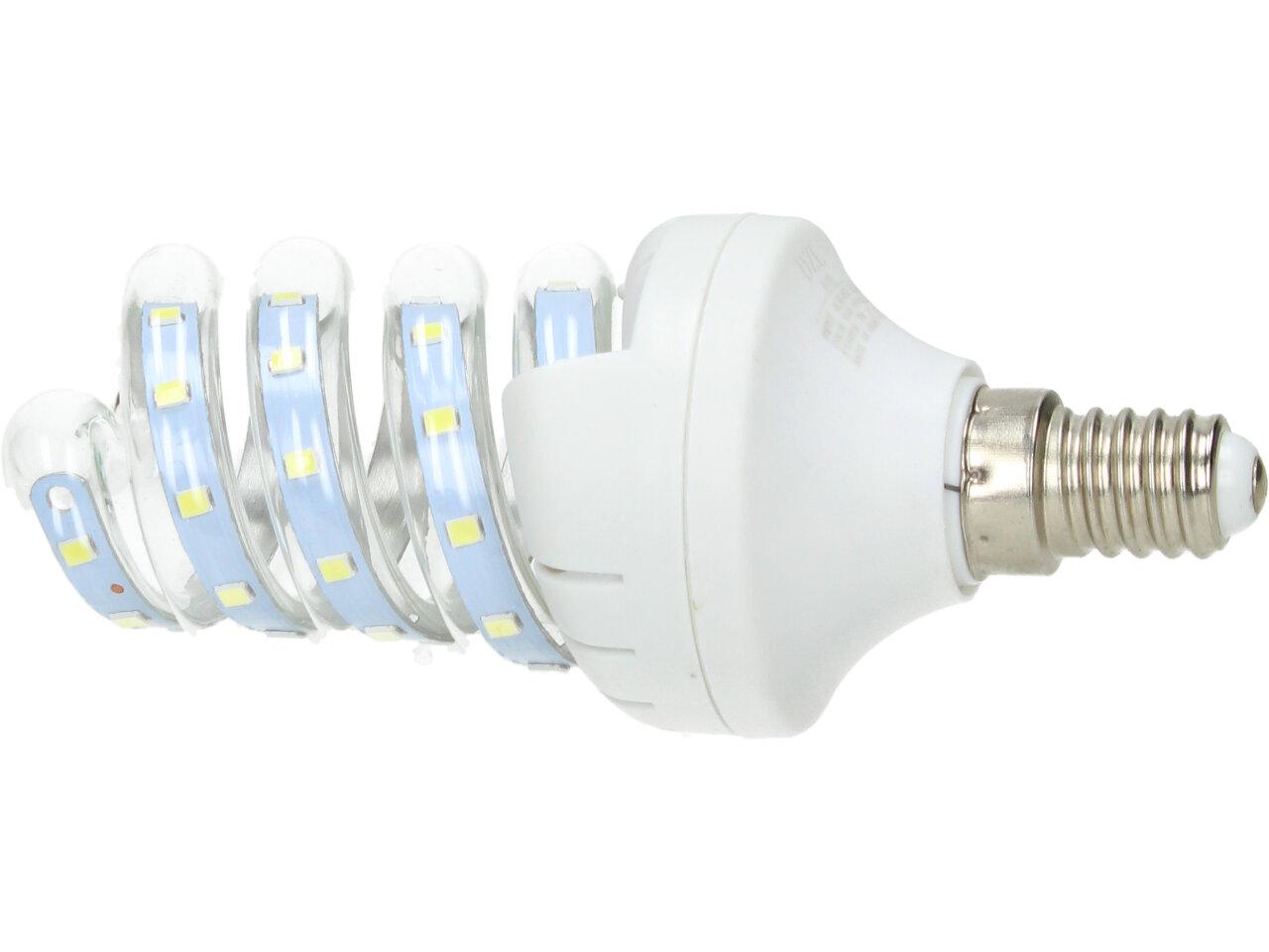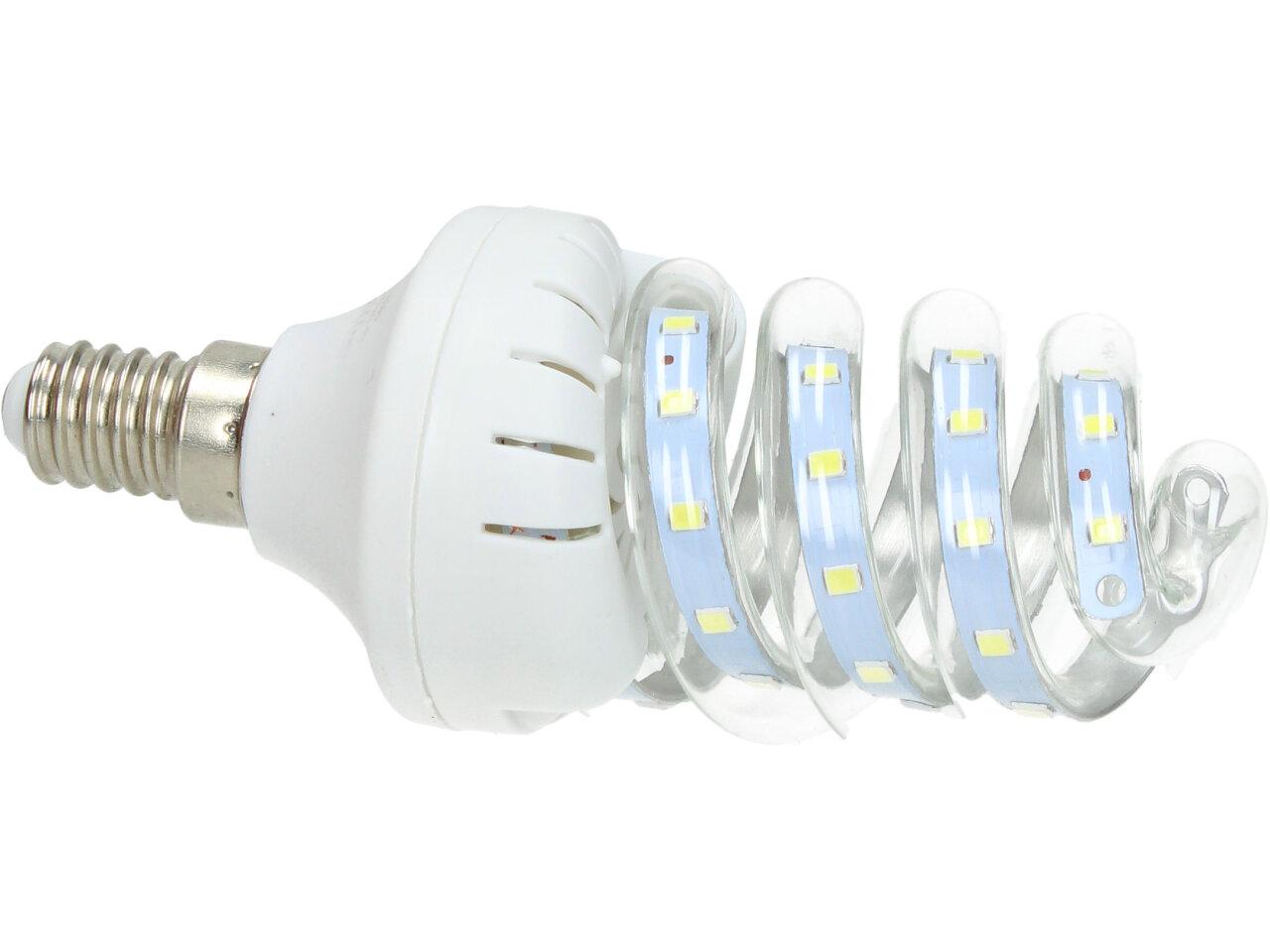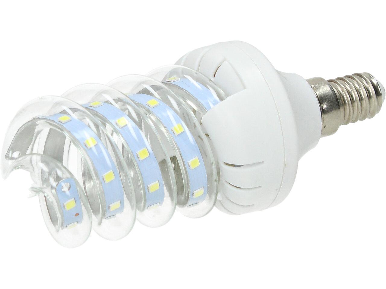 Úsporná žárovka 7W Spiral Led s paticí E14 je kvalitní náhrada za 60W klasickou žárovku. Žárovka je ve skleněné trubici, umožňující dobré chlazení LED diod, které mají dlouhou životnost. Žárovka je určena na napětí 220V a vyzařuje teplotu světla 6500 K, to je studená bílá. Úsporná žárovka 7W Spiral s paticí E14 je LED žárovka klasického tvaru s tím rozdílem, že jsou LED CHIPY ve skleněné trubici ve tvaru baňky s nejpoužívanějším závitem E14, které svítí bílým světlem (tzv. bílá studená).