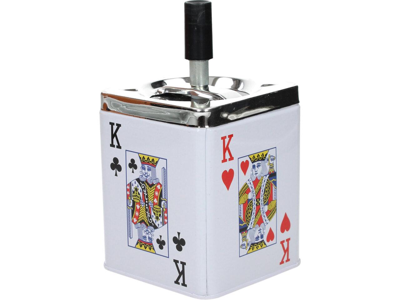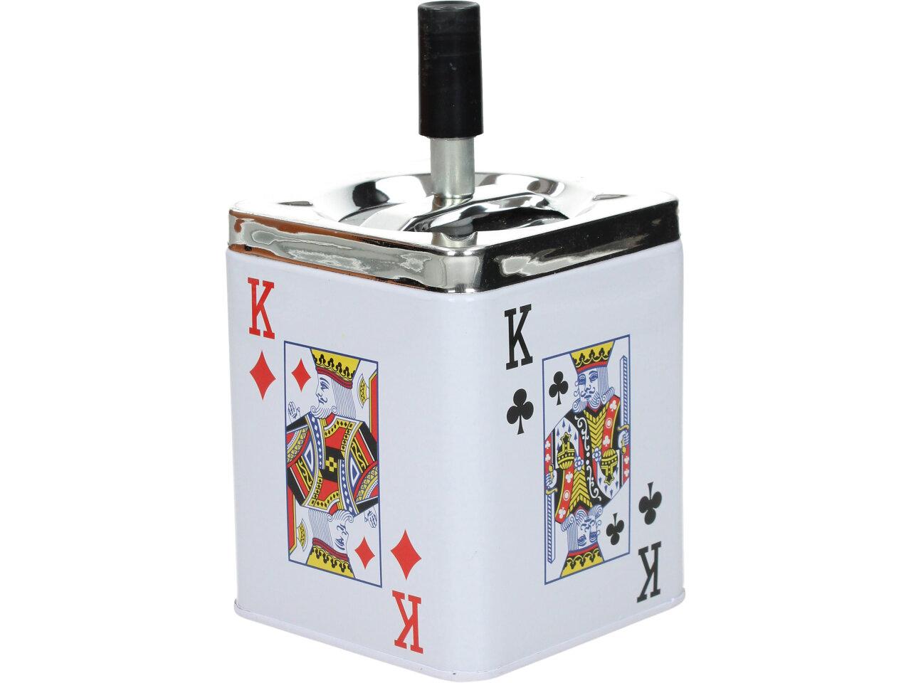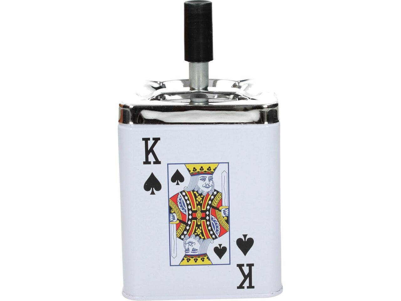Celkově hranatý popelník se zásobníkem v designu hrací karty je zábavným prvkem pro interiéry, které hledají neformální a hravou atmosféru