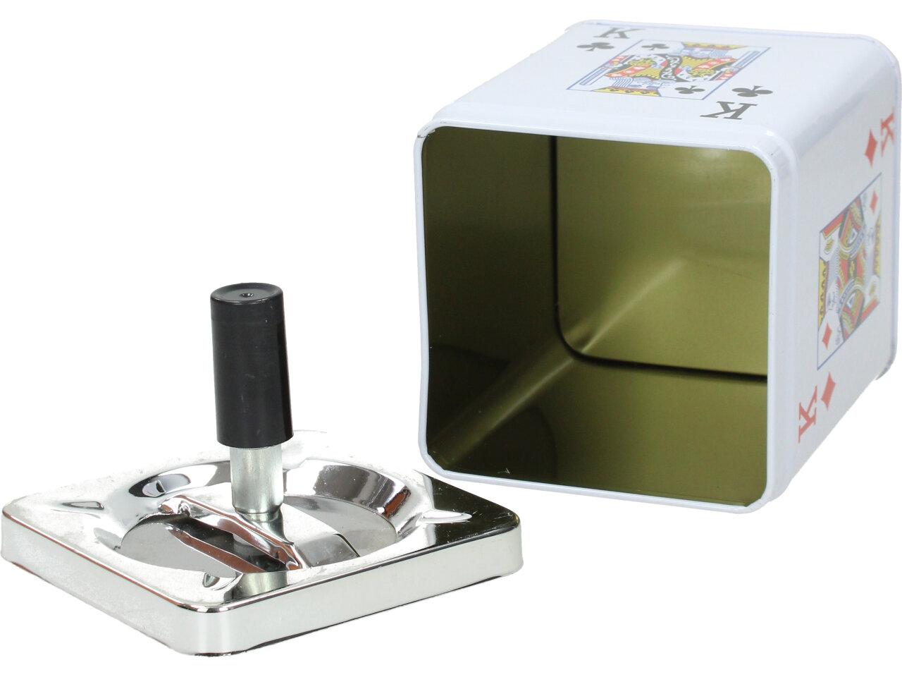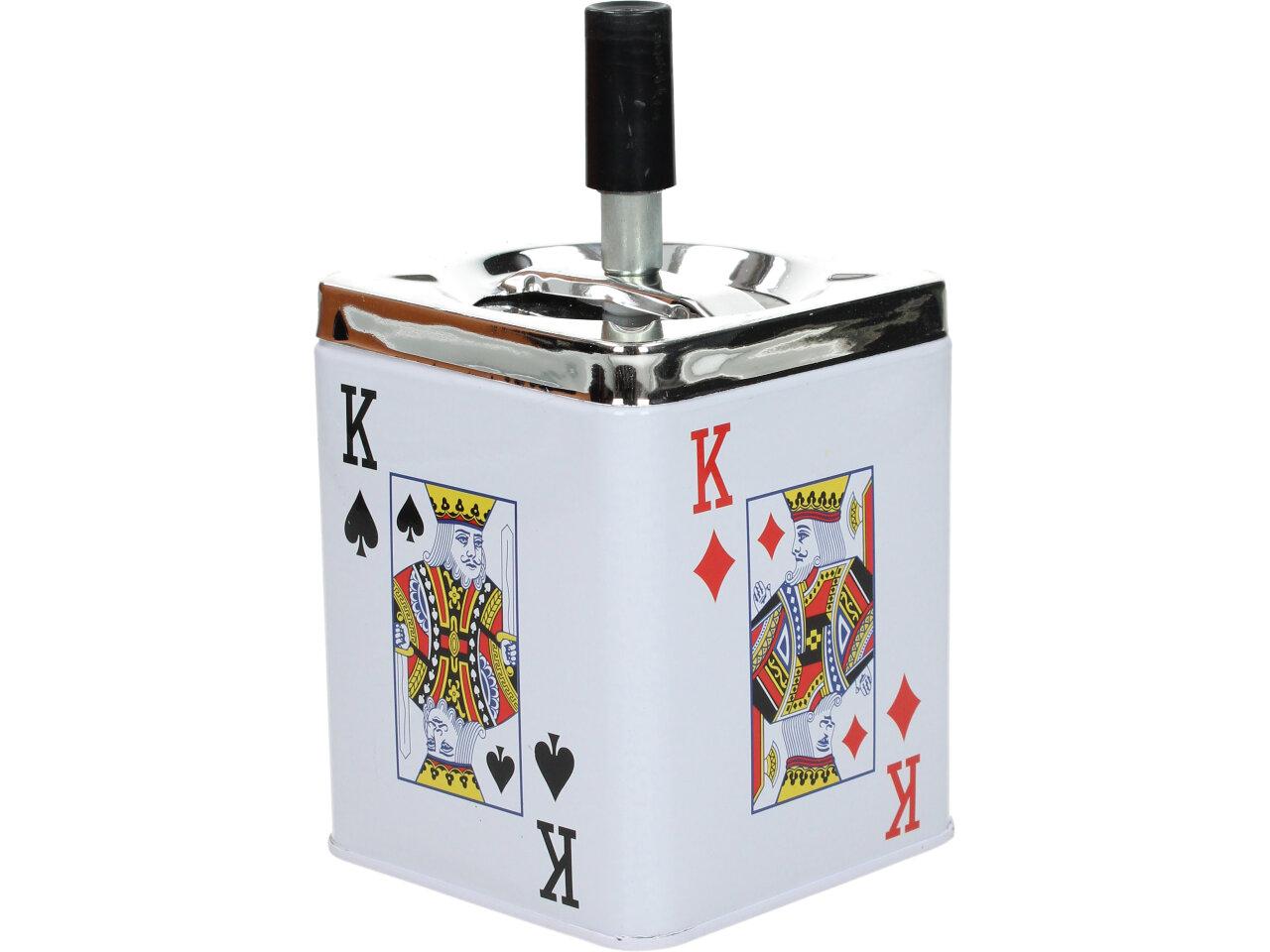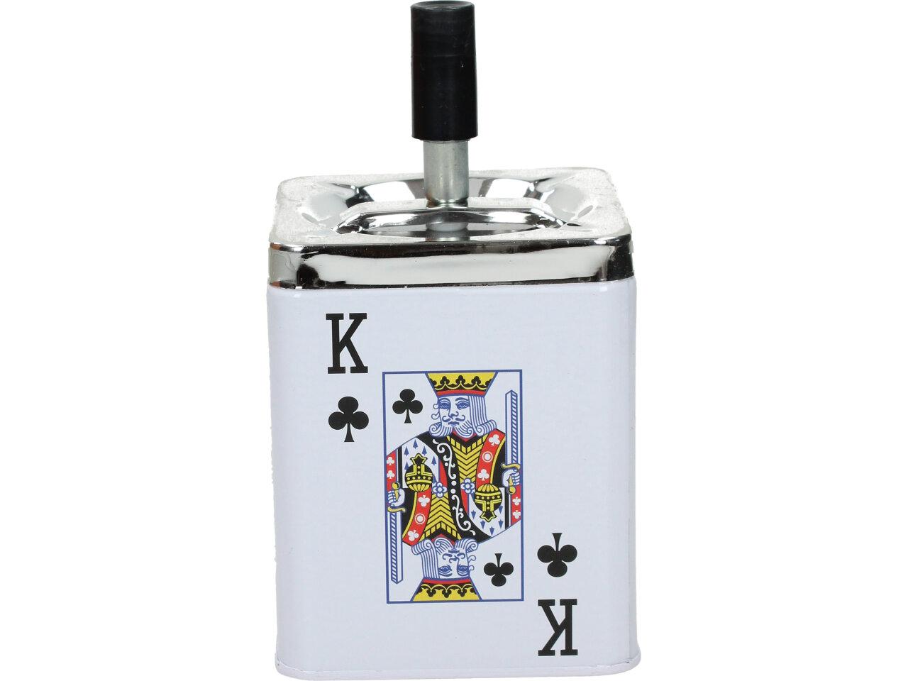 Celkově hranatý popelník se zásobníkem v designu hrací karty je zábavným prvkem pro interiéry, které hledají neformální a hravou atmosféru