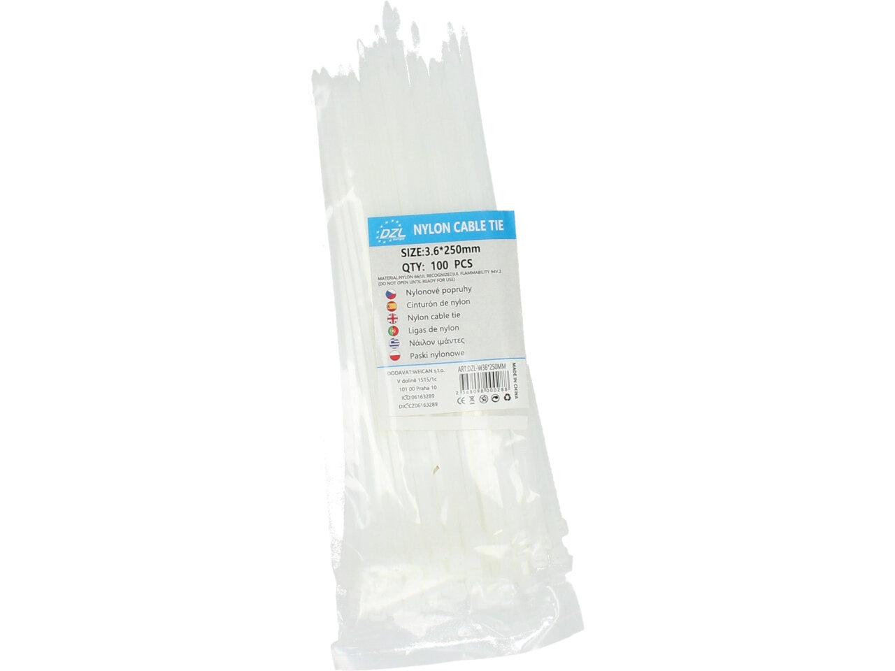 Stahovací pásky 3.6 x 250 mm 100 kusů bílé