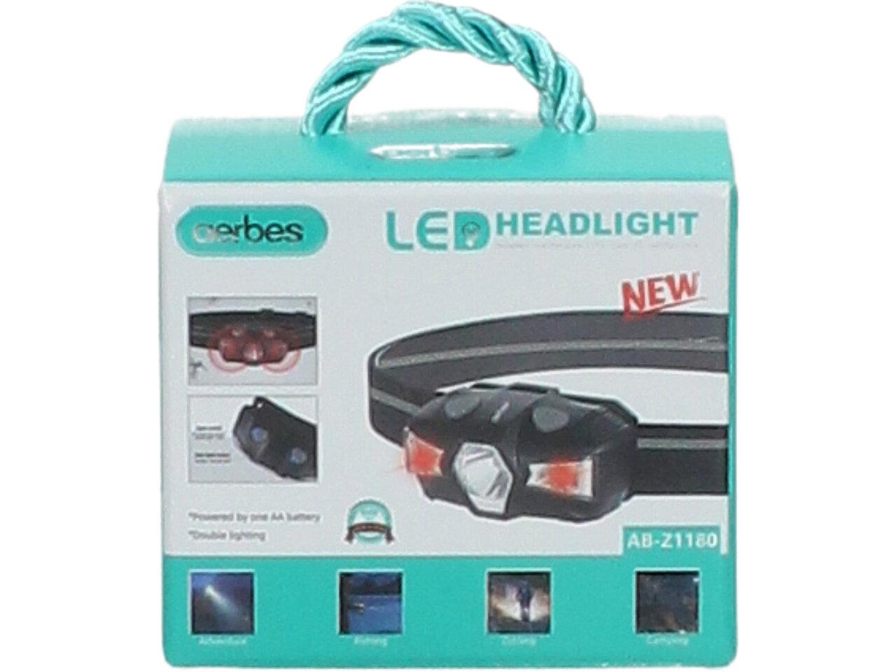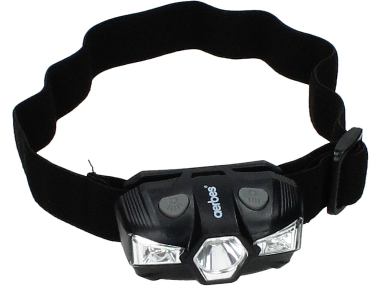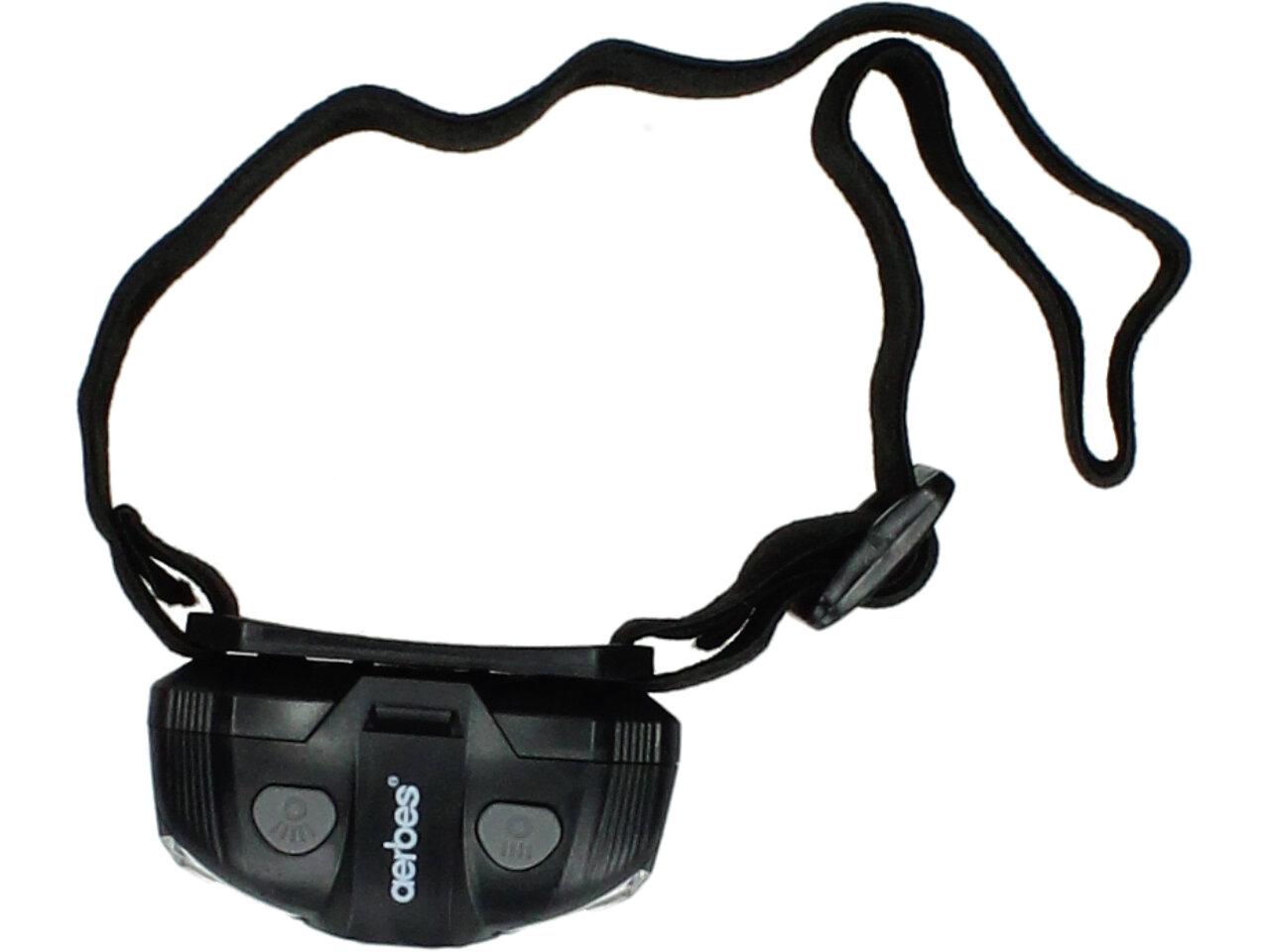 Lehká výkonná LED čelovka AERBES má tři světla, uprostřed jedno vysoce svítivé jasně bílé a po stranách dvě červená, výstražná světla. Bílé světlo má tři režimy svícení : silné světlo ( plný výkon ), slabší světlo pro úsporu energie a blikání. Červená světla mají dva režimy: svícení nebo blikání. Čelovku lze naklápět, takže svítí přesně tam, kam potřebujete.