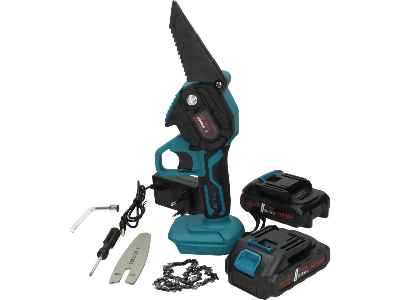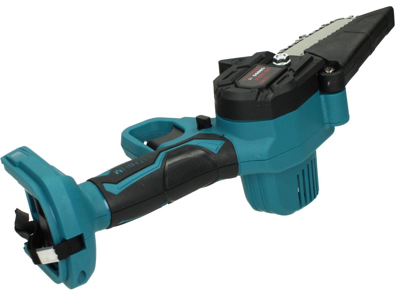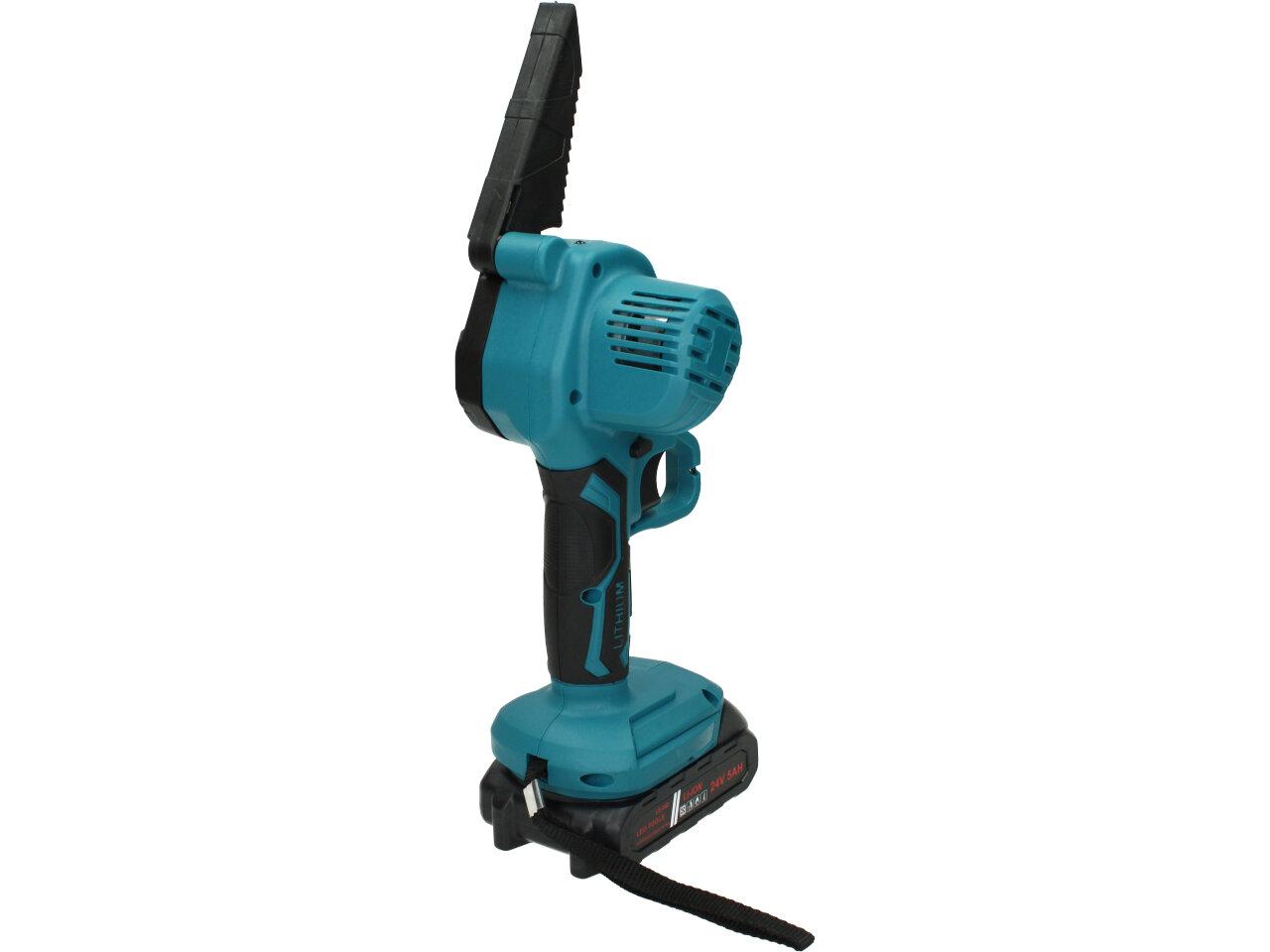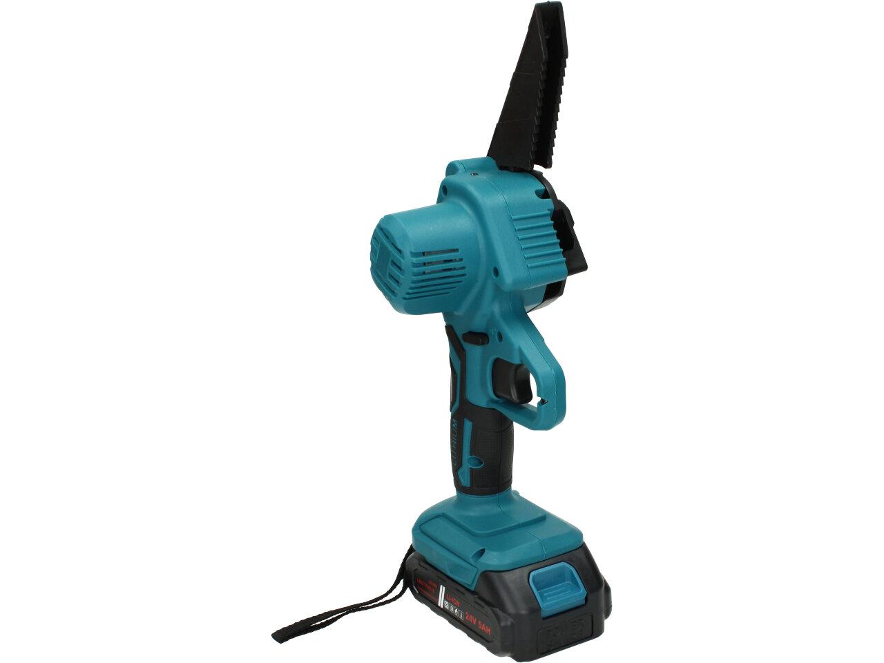 Elektrická ruční pila je vhodná pro zahradnictví a proto by neměla chybět v žádné kůlně. Snadno s ní prořezáte keře, tůje, odříznete větev a mnoho dalšího. Je zde přidané také tlačítko bezpečnostního zámku, které zabrání nechtěnému spuštění. Tato pila se vyznačuje vysokou tvrdostí řetězu a nízkou hmotností, díky které ji můžete používat pouze jednou rukou. Měděný motor zajistí silný výkon a nižší spotřebu energie, to následně zvyšuje efektivitu Vaší práce. Ergonomicky tvarovaná rukojeť poskytne pohodlné a pevné uchopení. Můžete si také nastavit i rychlost řezání, klasickým stlačováním spíneče. Spolu s pilou obdržíte v balení 2x Li-ionovou baterii 5000mAh