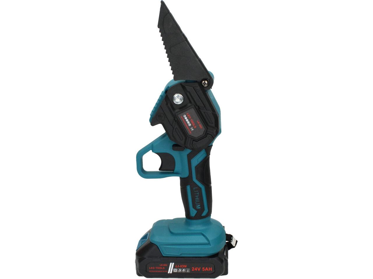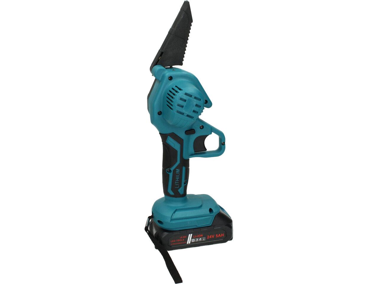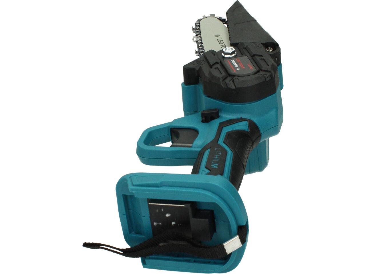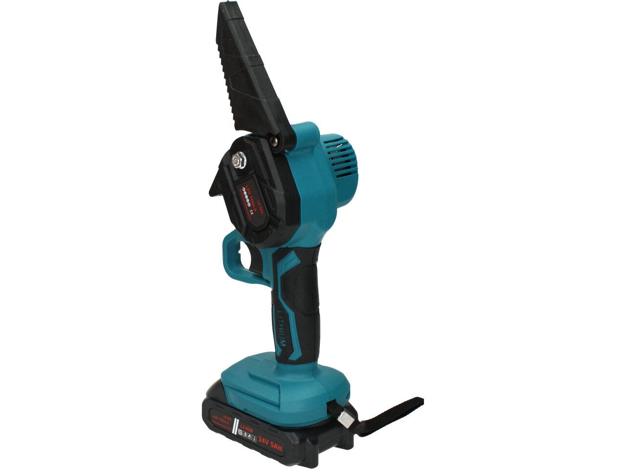 Elektrická ruční pila je vhodná pro zahradnictví a proto by neměla chybět v žádné kůlně. Snadno s ní prořezáte keře, tůje, odříznete větev a mnoho dalšího. Je zde přidané také tlačítko bezpečnostního zámku, které zabrání nechtěnému spuštění. Tato pila se vyznačuje vysokou tvrdostí řetězu a nízkou hmotností, díky které ji můžete používat pouze jednou rukou. Měděný motor zajistí silný výkon a nižší spotřebu energie, to následně zvyšuje efektivitu Vaší práce. Ergonomicky tvarovaná rukojeť poskytne pohodlné a pevné uchopení. Můžete si také nastavit i rychlost řezání, klasickým stlačováním spíneče. Spolu s pilou obdržíte v balení 2x Li-ionovou baterii 5000mAh