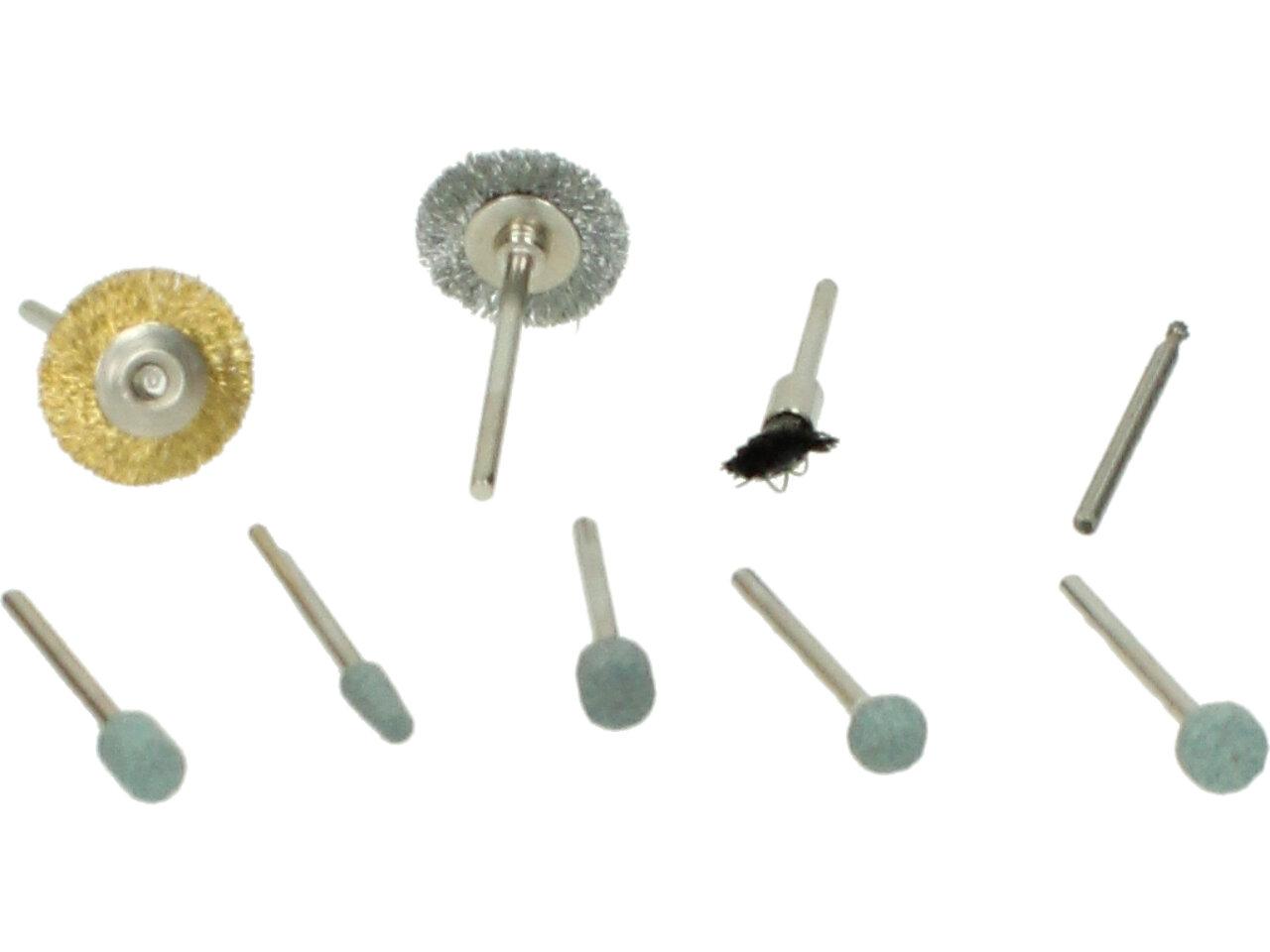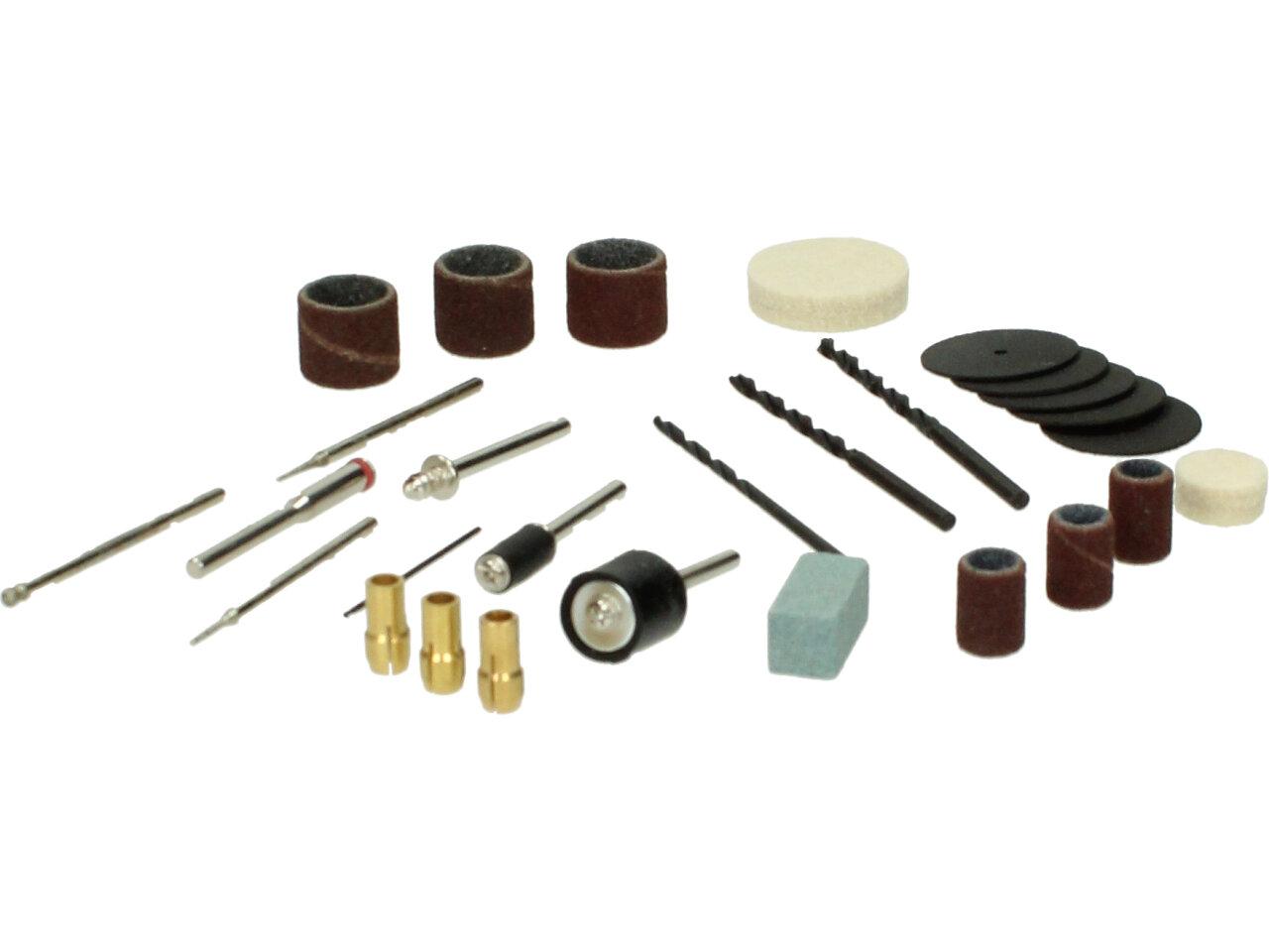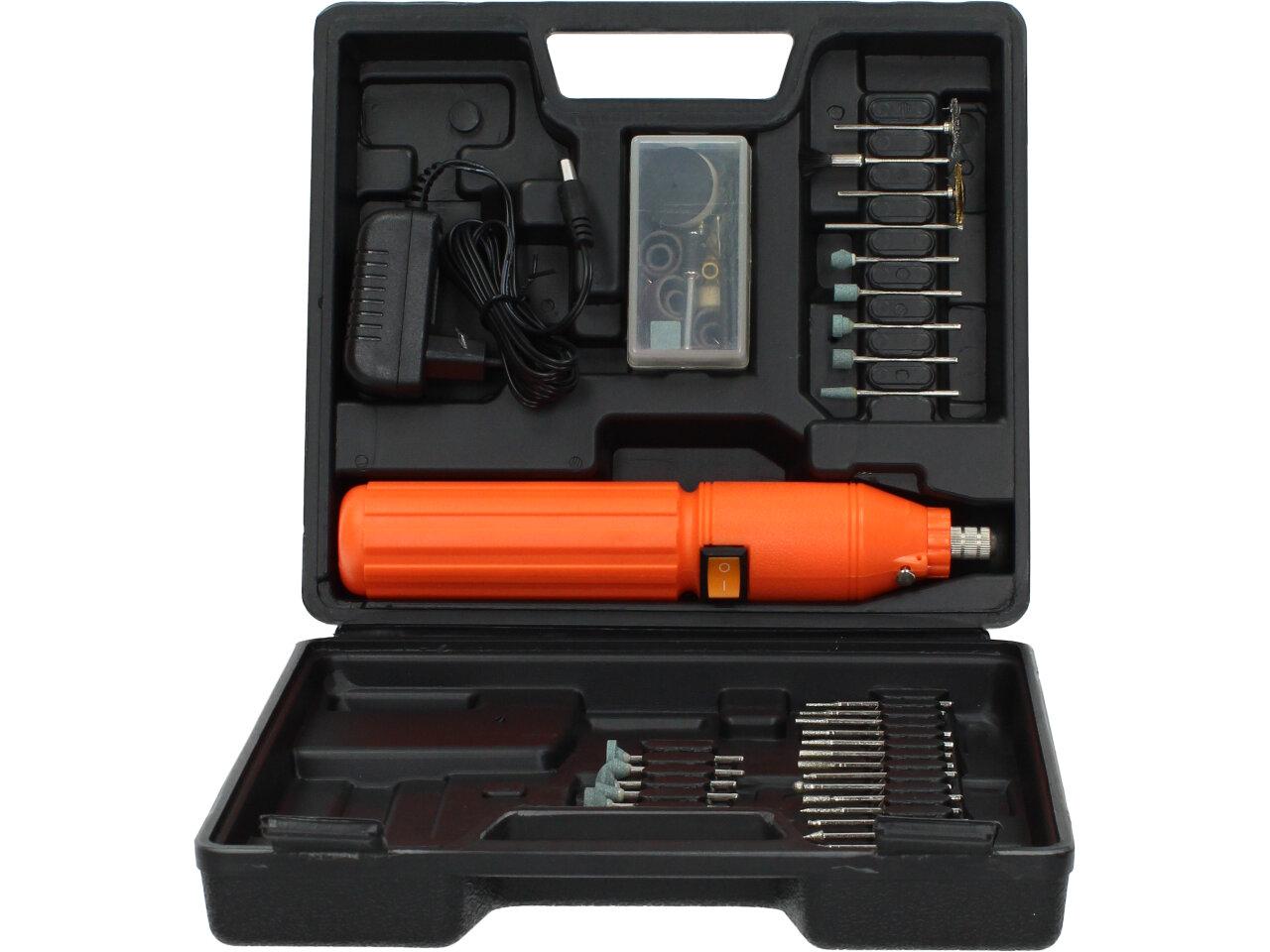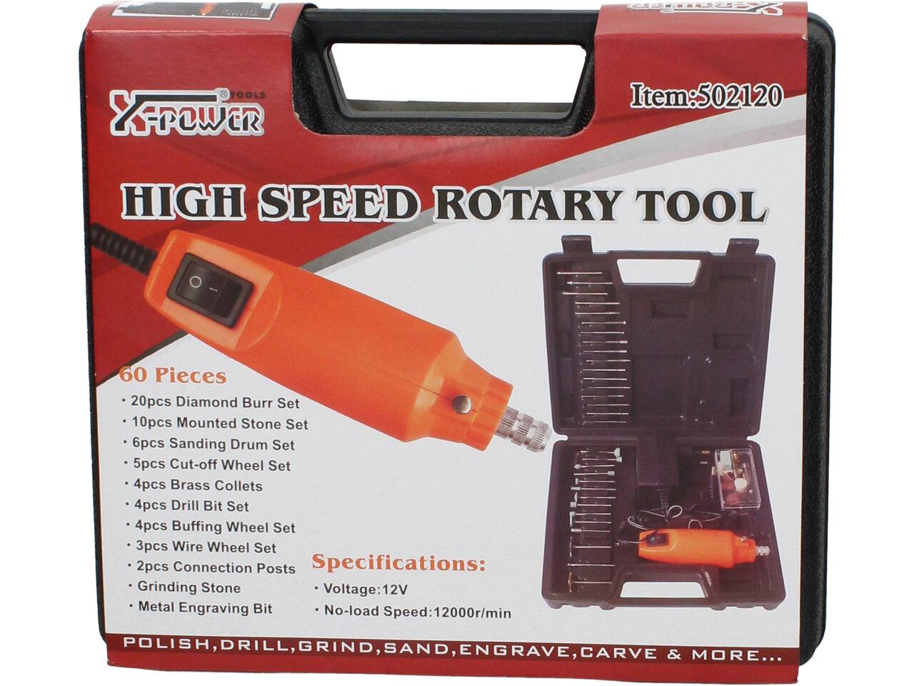 Vysokorychlostní rotační bruska 7W a 15 000 otáček za minutu, skvělý pomocník, který lze využít několika způsoby. Například leštit, vrtat, brousti, rýt, vyřezávat. Sada obsahuje 60 kusů. Bruska má anatomicky tvarované tělo, malou velikost a je s ní snadná manipulace, gumové plošky k minimalizaci vybrací, LED dioda a vše je plastovém kufříku.