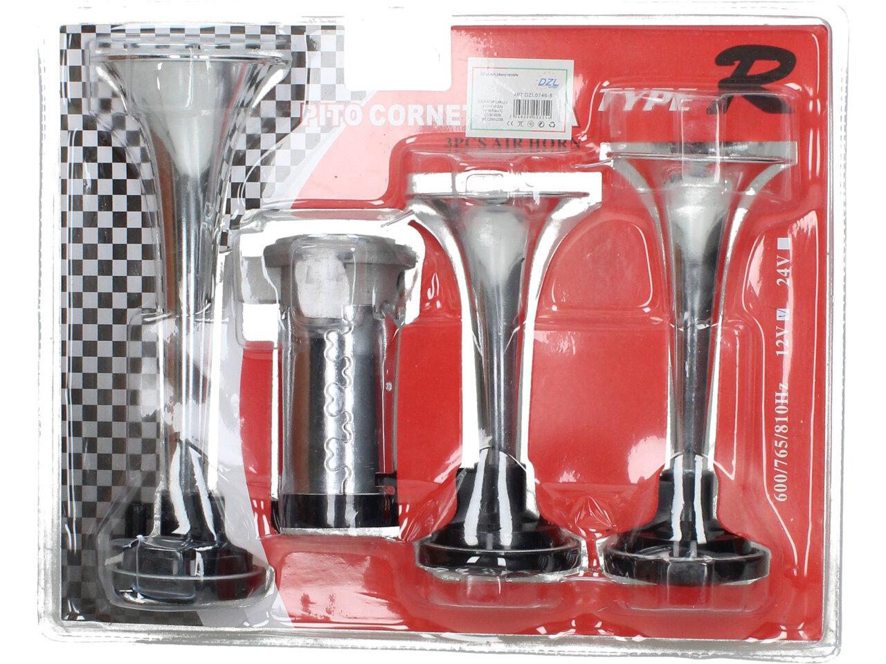 Chromový klakson s kompresorem 3 ks specifikace: