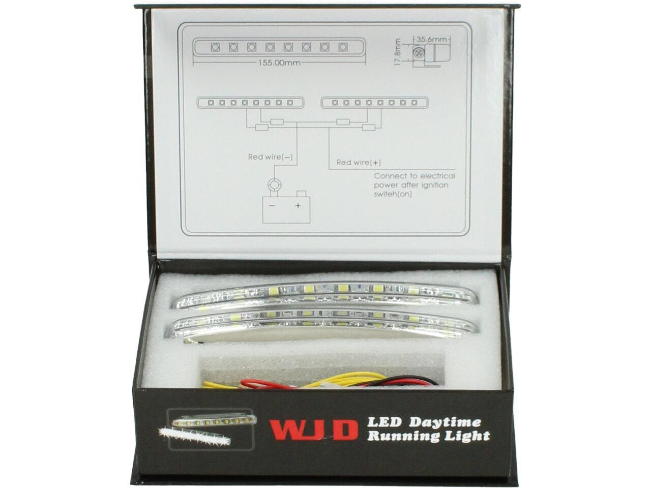 vysoce kvalitní sada (2 kusy) 8 světel Super LED světla pro denní svícení (DRL), univerzální pro všechny nejnovější SUV nebo nákladní automobily atd. Světla pro denní svícení (DRL) jsou z ultra tenké konstrukce, která se běžně instaluje za masku chladiče, pod motorový prostor nebo pod nárazník. Tato světla pro denní svícení jsou dodávána s chromovými pouzdry a 8ks čistě bílých LED diod s vysokým jasem na každé straně. Mohou být použity jako denní světla, parkovací světla, mlhová světla nebo dokonce signální světla. Tyto LED by výrazně zvýšily viditelnost vašeho vozu během dne i noci a zvýšily bezpečnost jízdy. Bylo by to také vzhled vašeho vozu na luxusnější vzhledvodotěsný pro všechny silniční podmínky, ultra tenký a lehký design s nastavitelným kovovým držákem pro univerzální uchycení, zlepšení celkového vzhledu s extra chladným bílým paprskem (6000K ~ 7000K) s moderním stylem. Extrémně dlouhá životnost a nízká spotřeba.