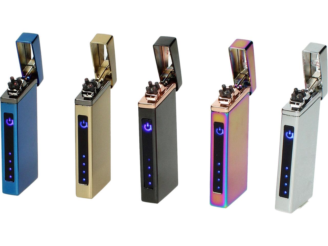 Má to smysl mít v nabídce — nabíjecí USB plazmový zapalovač Luxusní kovový zapalovač, který nabízí několik barev: černá, střibrná, zlatá, modrá a duhová..