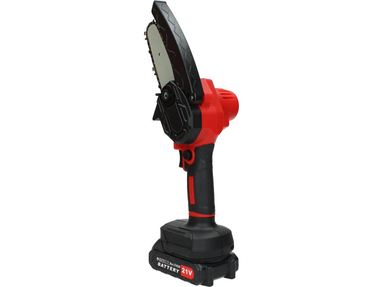 Elektrická ruční pila je vhodná pro zahradnictví a proto by neměla chybět v žádné kůlně. Snadno s ní prořezáte keře, tůje, odříznete větev a mnoho dalšího. Je zde přidané také tlačítko bezpečnostního zámku, které zabrání nechtěnému spuštění. Tato pila se vyznačuje vysokou tvrdostí řetězu a nízkou hmotností, díky které ji můžete používat pouze jednou rukou. Měděný motor zajistí silný výkon a nižší spotřebu energie, to následně zvyšuje efektivitu Vaší práce. Ergonomicky tvarovaná rukojeť poskytne pohodlné a pevné uchopení. Můžete si také nastavit i rychlost řezání, klasickým stlačováním spíneče. Spolu s pilou obdržíte v balení 1x Li-ionovou baterii 21V.