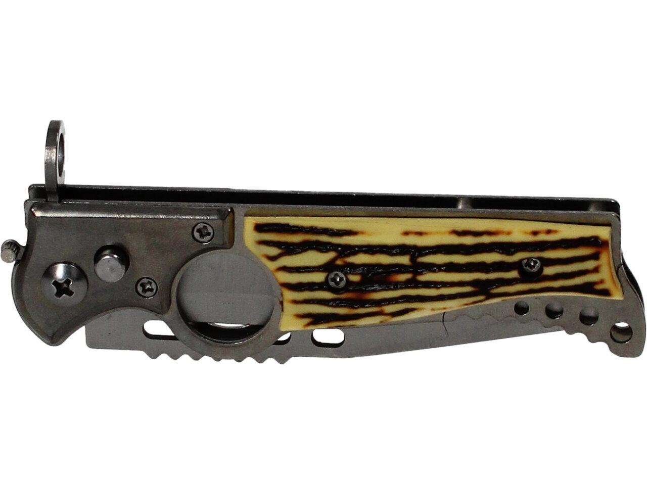 Vystřelovací kapesní nůž s okem a se žlutou střenkou 20 cm specifikace: