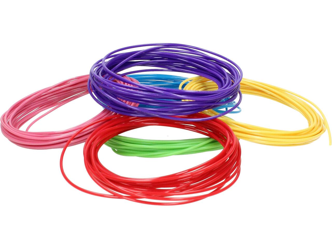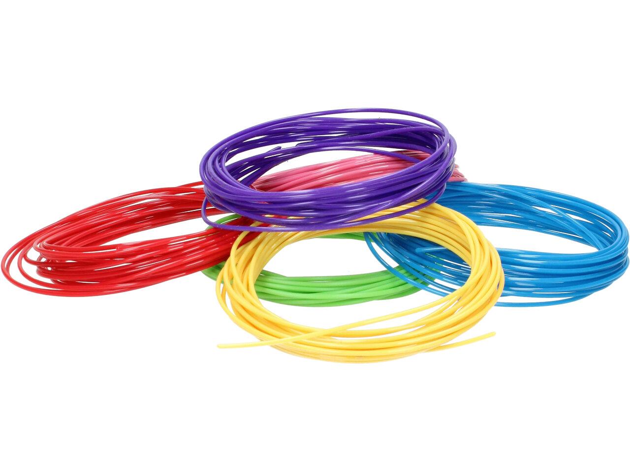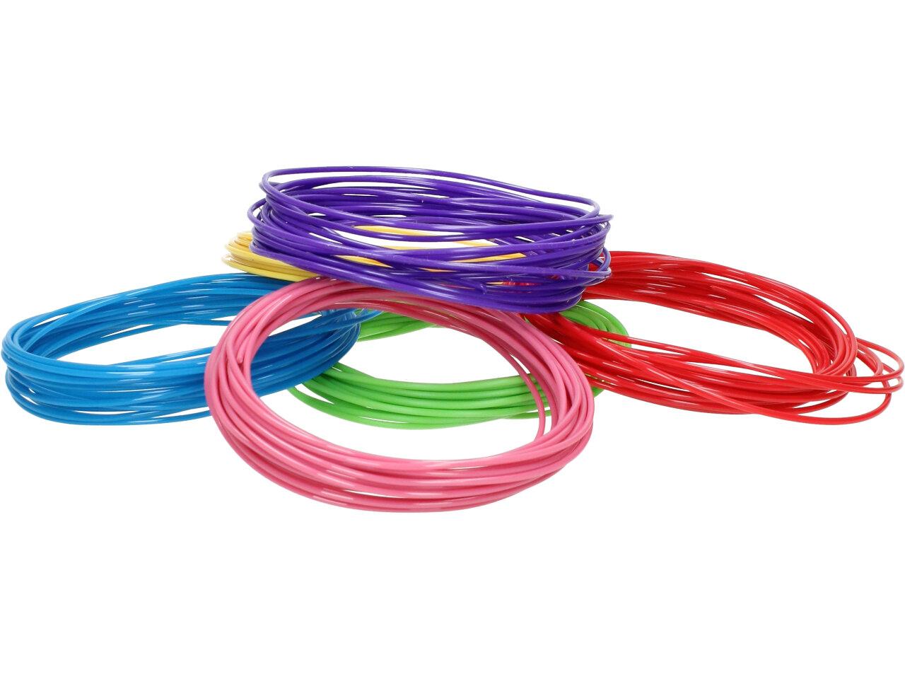 Náhradní náplň pro 3D pero, která obsahuje 6 různých barev o délce 5 metrů (každá barva). Díky zajímavým a pestrým barvám můžete vytisknout mnoho vzorů, které budou vyvolány fantazií vašeho dítěte. Nezapomeňte však po skončení hry důkladně vyčistit trysku pera.
