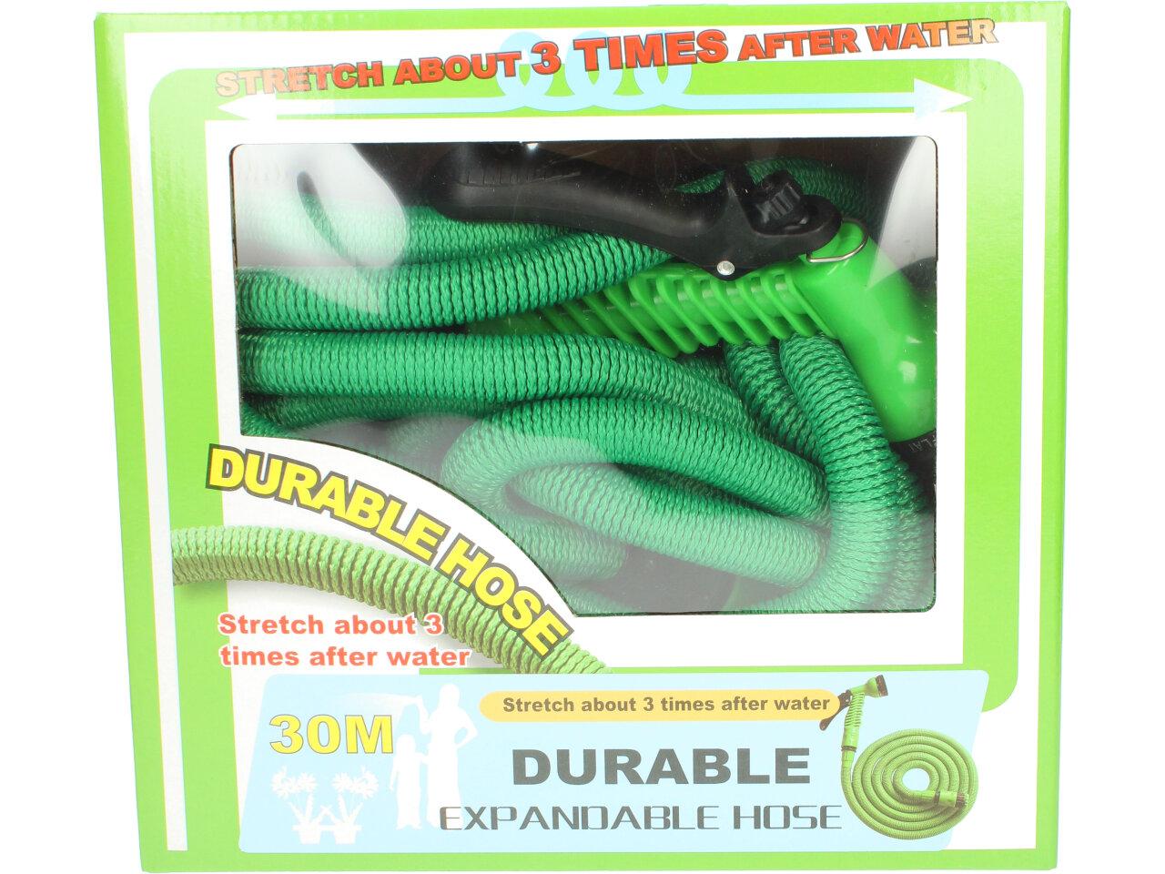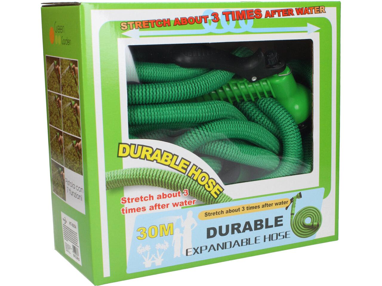 Rozšiřitelná smršťovací hadice, která jen tak nepraskne. Po připojení k vodovodnímu kohoutku rychlospojkou se zvětší 3 krát, je opatřena nastavitelnou hlavicí. Podle strukturuy opláštění na foto si všimněte její dokonalou ochranu proti levným kopiím.