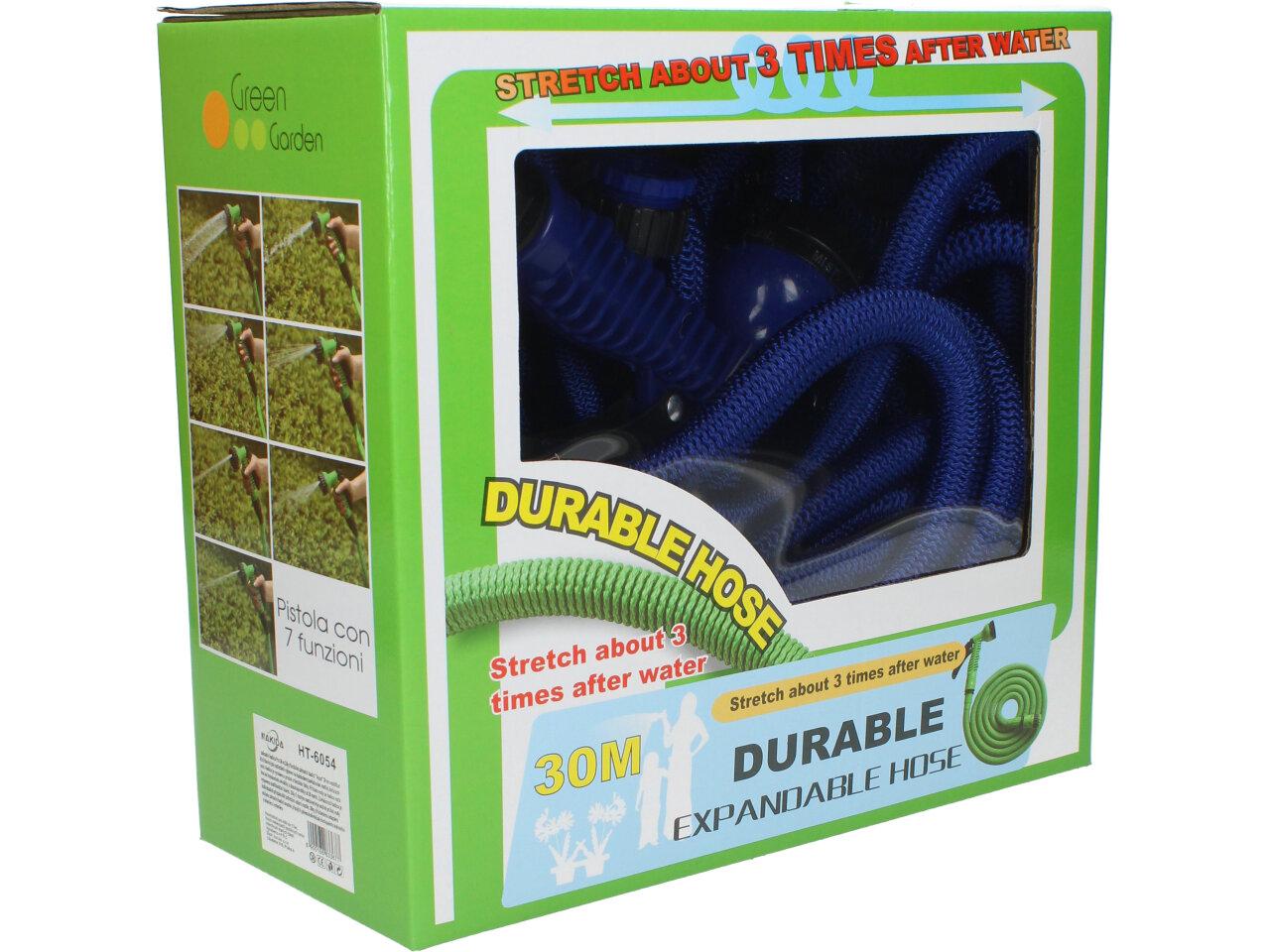 Rozšiřitelná smršťovací hadice, která jen tak nepraskne. Po připojení k vodovodnímu kohoutku rychlospojkou se zvětší 3 krát, je opatřena nastavitelnou hlavicí. Podle strukturuy opláštění na foto si všimněte její dokonalou ochranu proti levným kopiím.