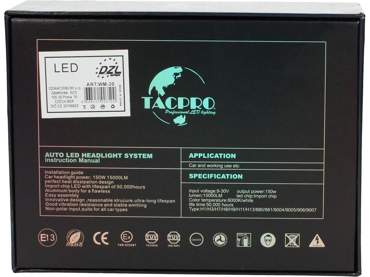 H7 žárovky LED Tacpro A5 6000K Can Bus sada 2 kusy specifikace:
