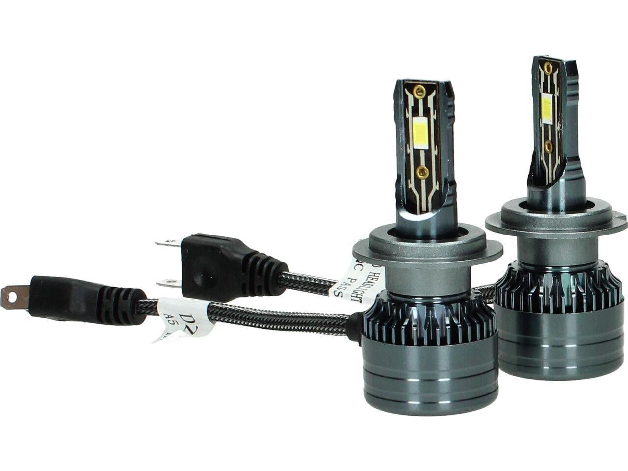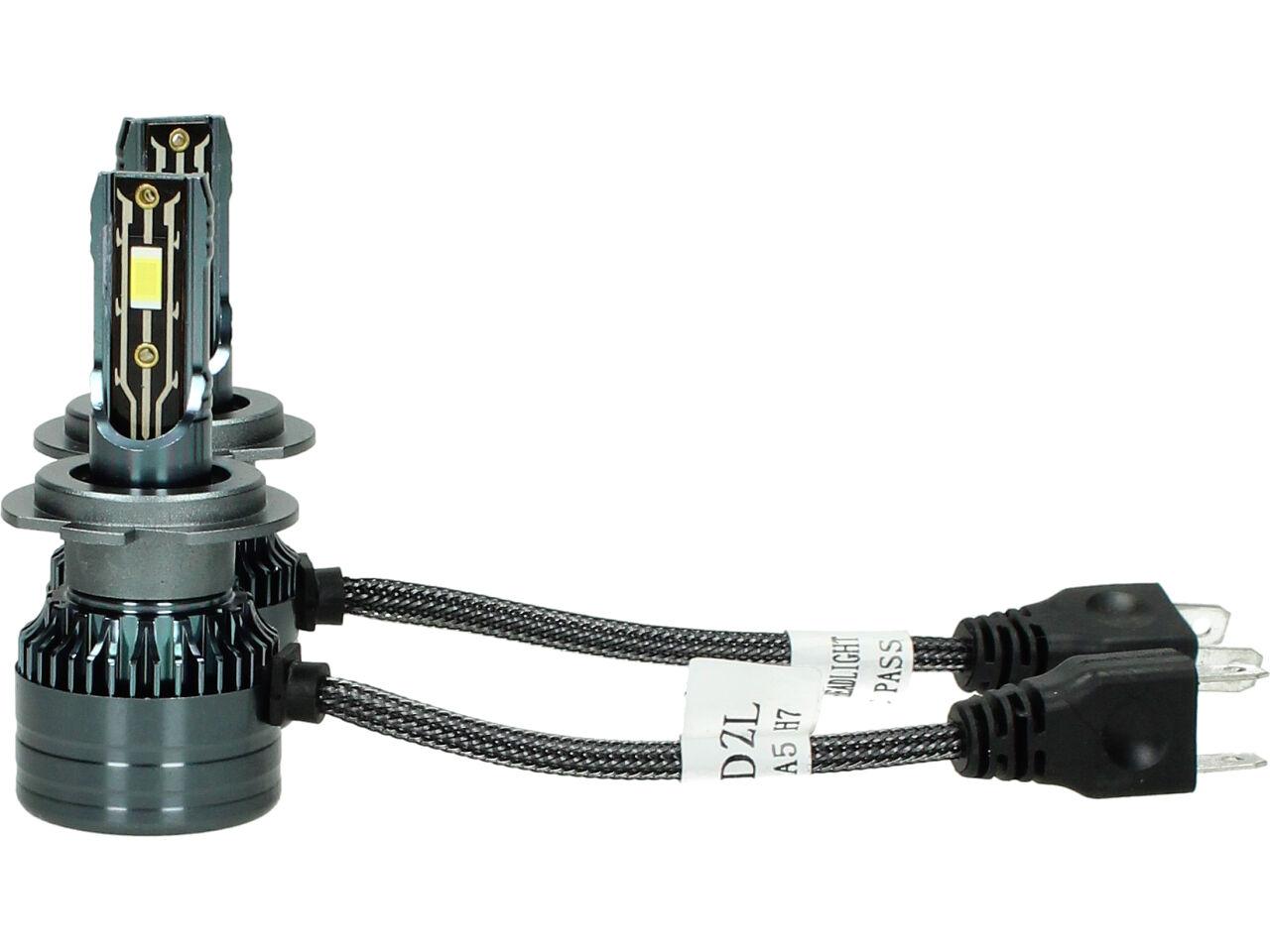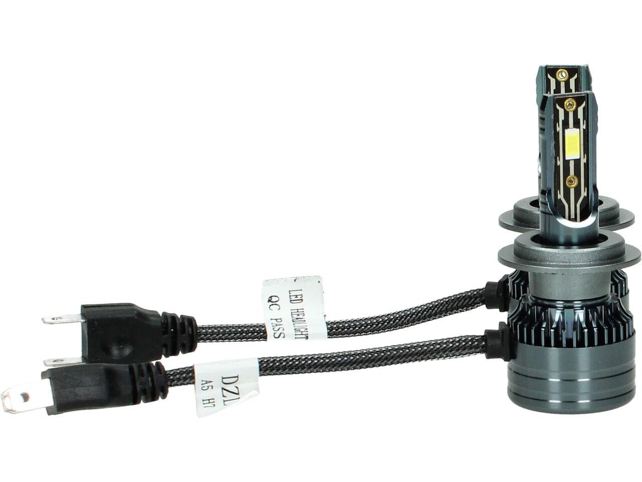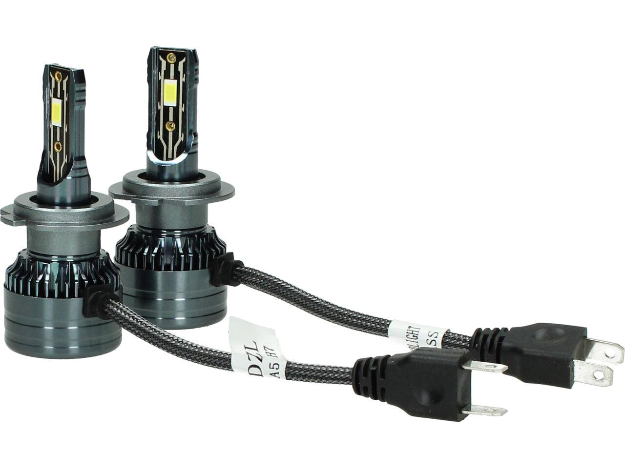 Velice odolná LED H7 model A5 žárovka s barvou světla 6000K (studená bílá) sada 2 kusy do světlometu do auta na 12V, 24V jako náhrada za klasickou nevýkonou žárovku H7.