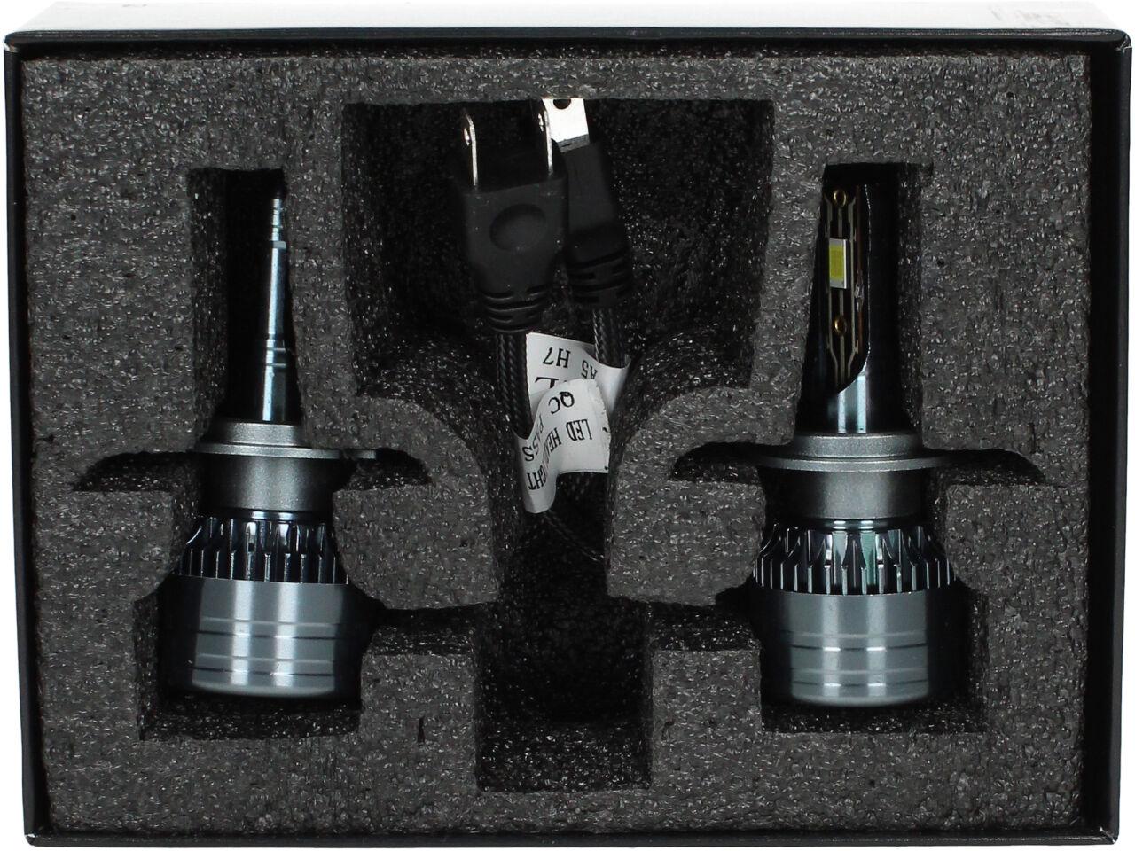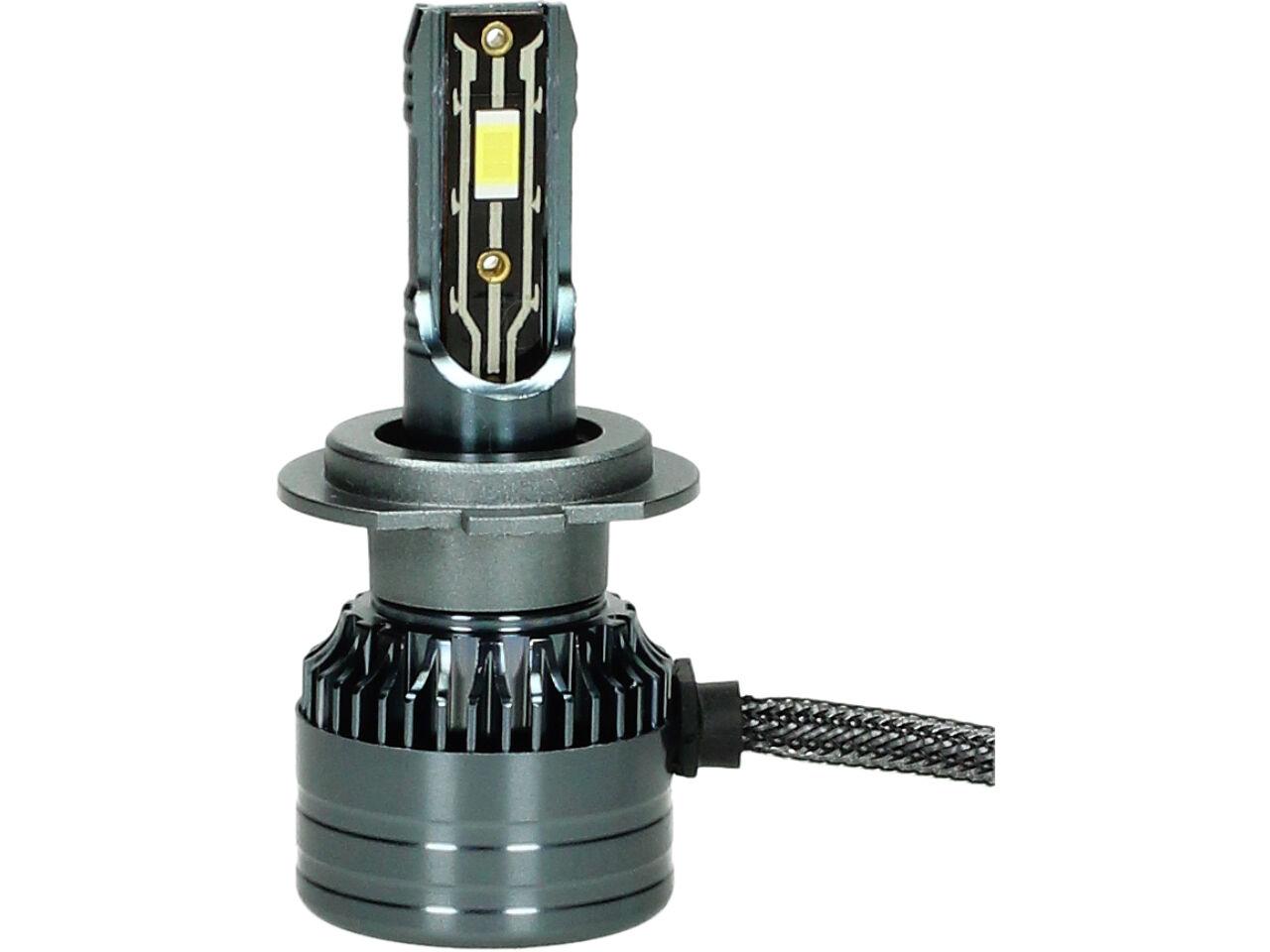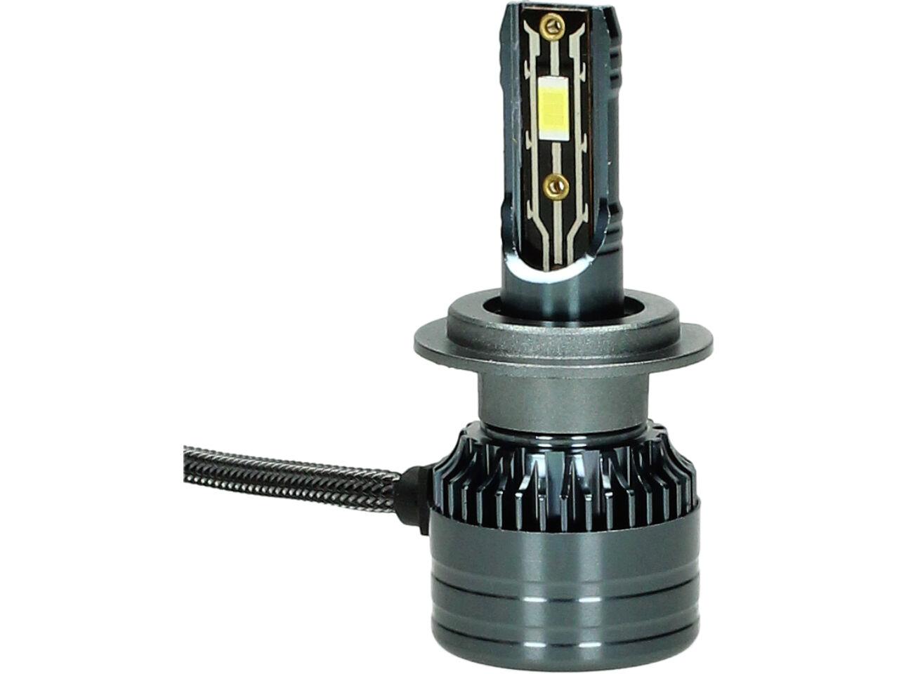 Velice odolná LED H7 model A5 žárovka s barvou světla 6000K (studená bílá) sada 2 kusy do světlometu do auta na 12V, 24V jako náhrada za klasickou nevýkonou žárovku H7.