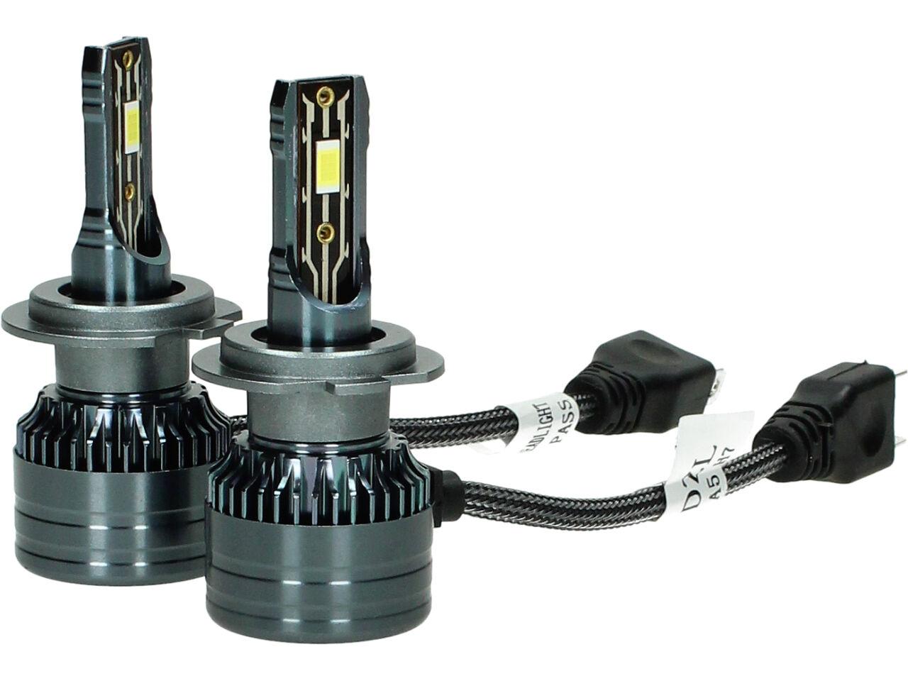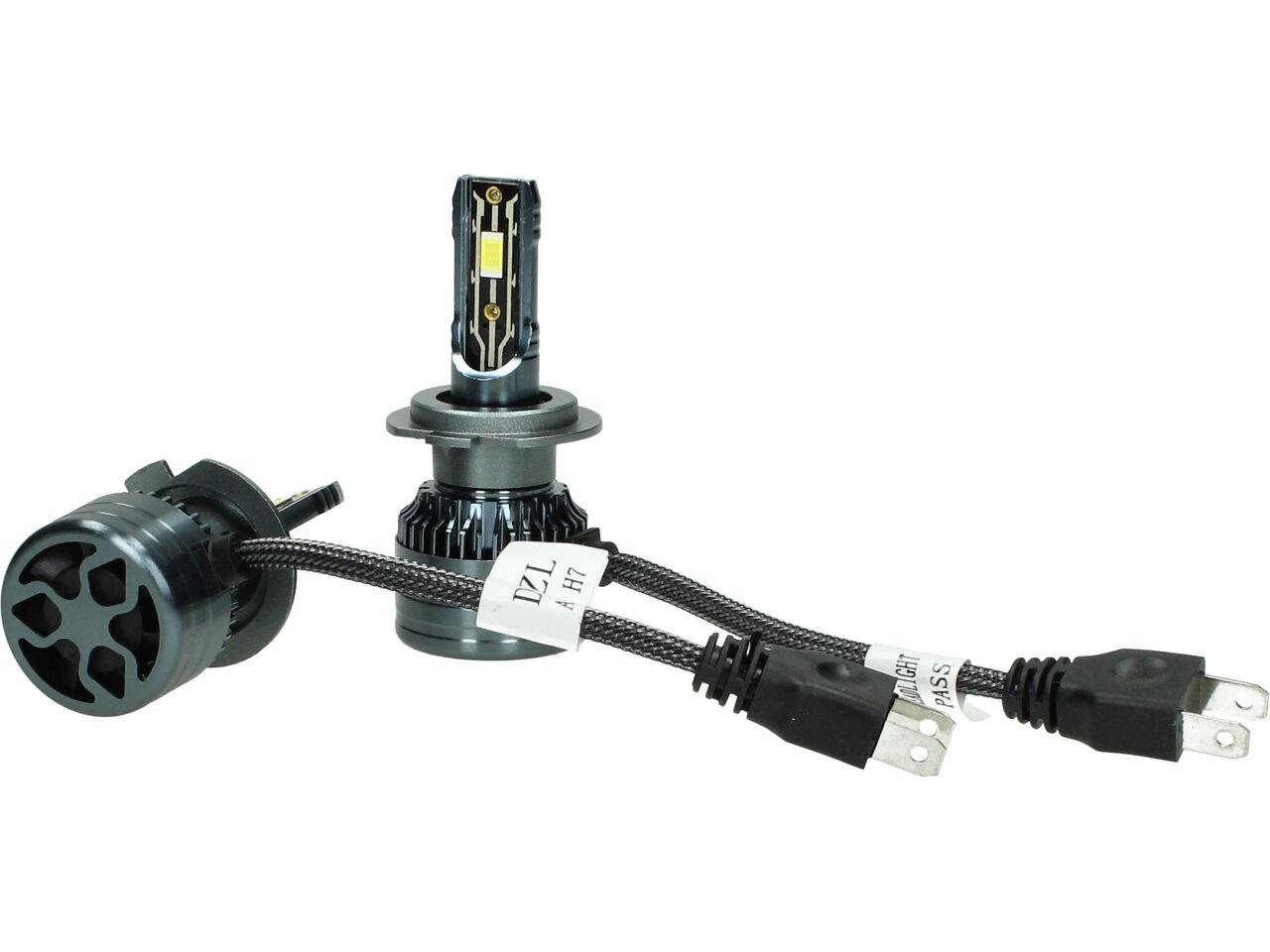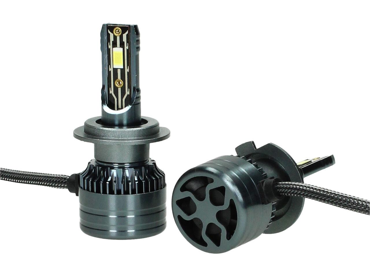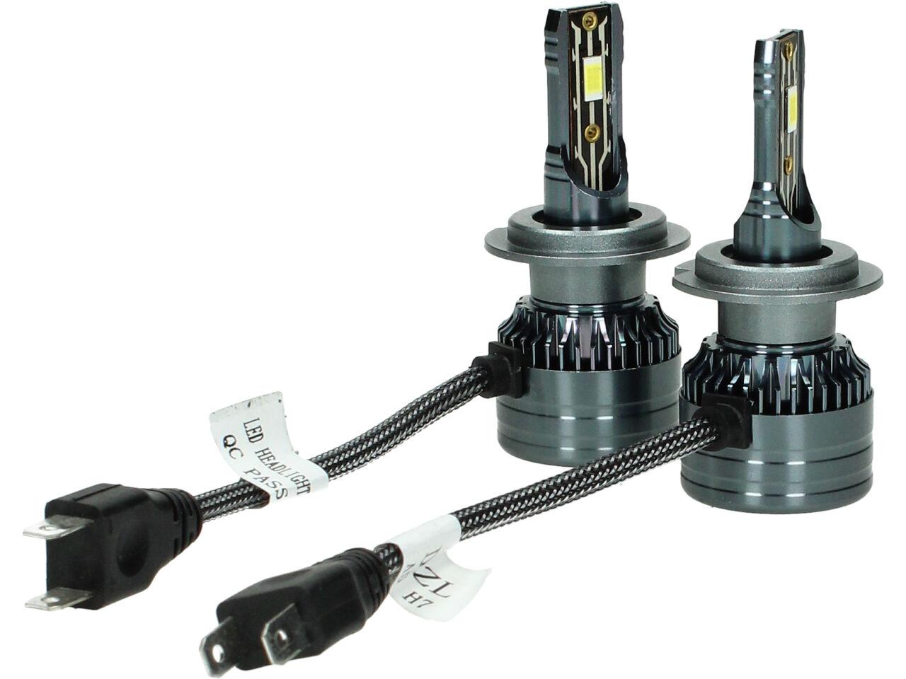 Velice odolná LED H7 model A5 žárovka s barvou světla 6000K (studená bílá) sada 2 kusy do světlometu do auta na 12V, 24V jako náhrada za klasickou nevýkonou žárovku H7.