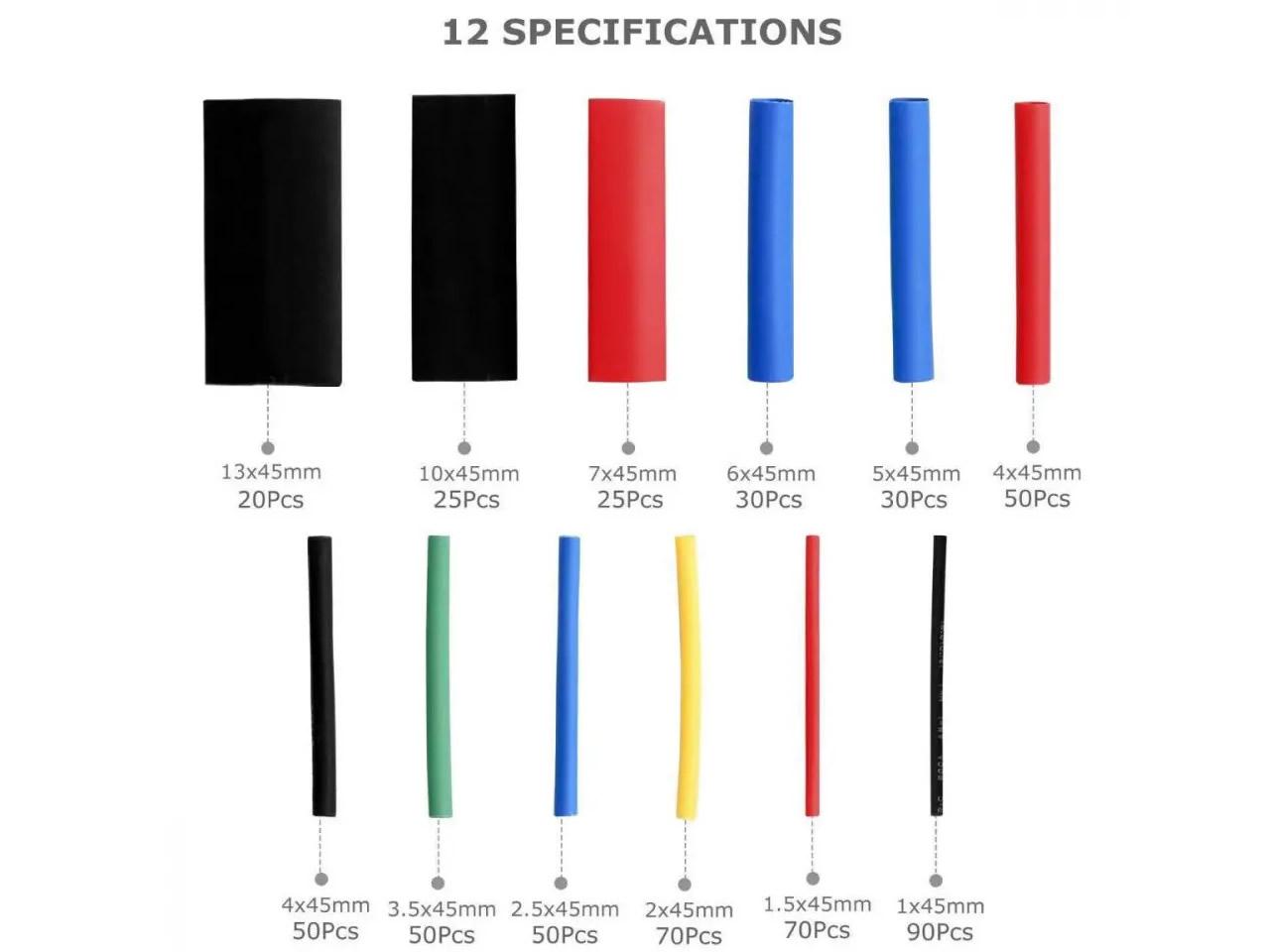 Tepelná smršťovací izolace na kabely 12 velikostí 560 kusů Pervoi Specifikace: