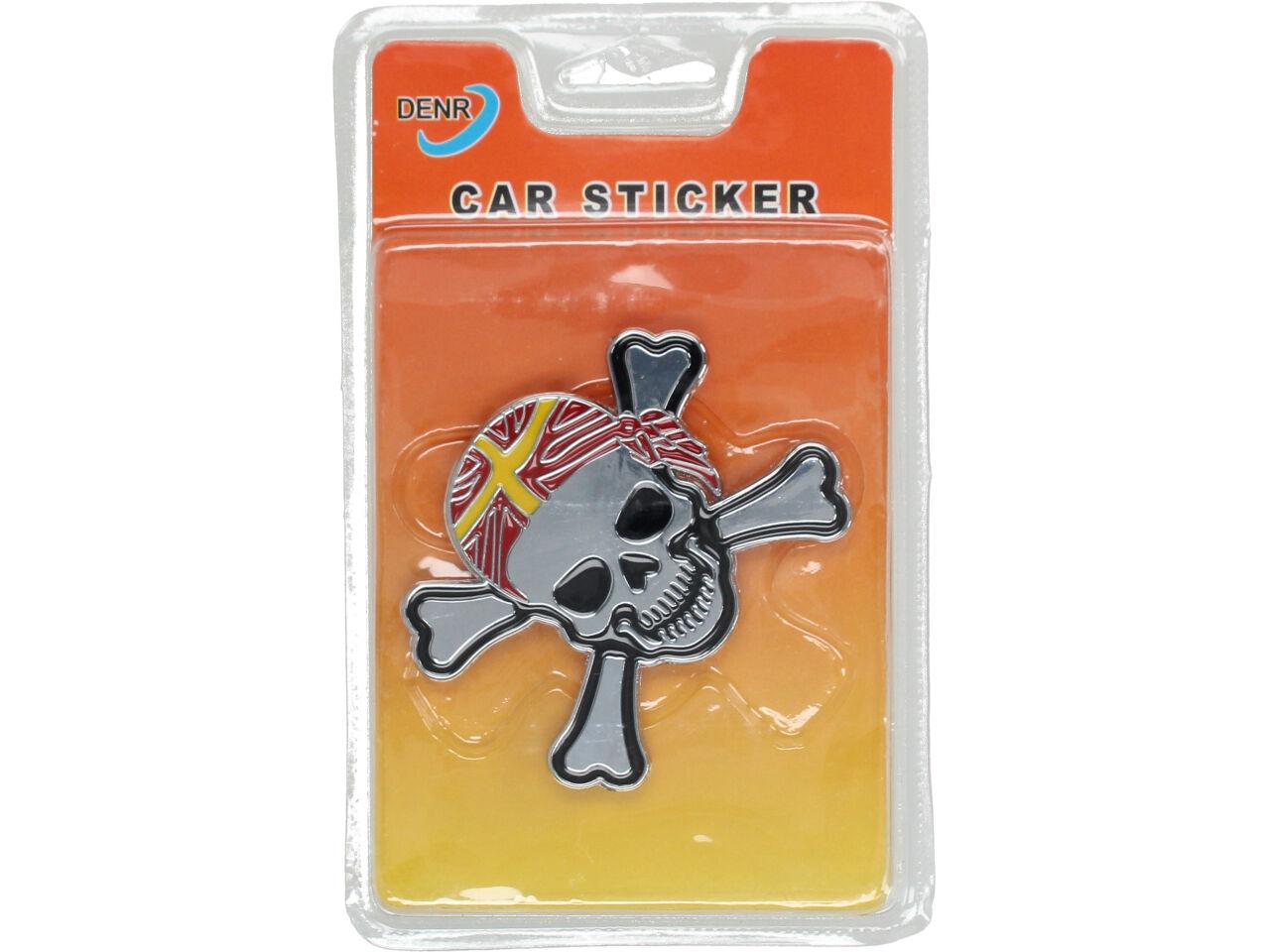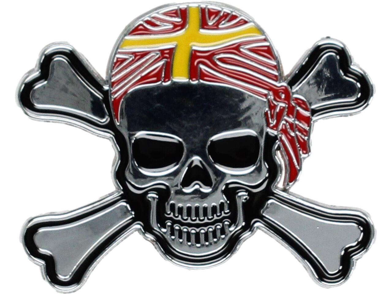 Kovová samolepka Lebka s šátkem 7,5cm x 6,5cm. Tahle parádní nálepka kovová Lebka s šátkem 7,5cm x 6,5cm vypadá naprosto luxusně a vylepší vzhled vašeho auta. Kvalitní nálepka o rozměrech 7,5cm x 6,5cm je opatřena oboustranou lepící páskou. Předností této samolepky je fakt, že vydrží podstatně delší dobu než nálepka klasická. Na kvalitní kovovou nálepku poskytujeme záruku 24 měsíců. Prohlédněte si i další kovové samolepky z naší široké nabídky.