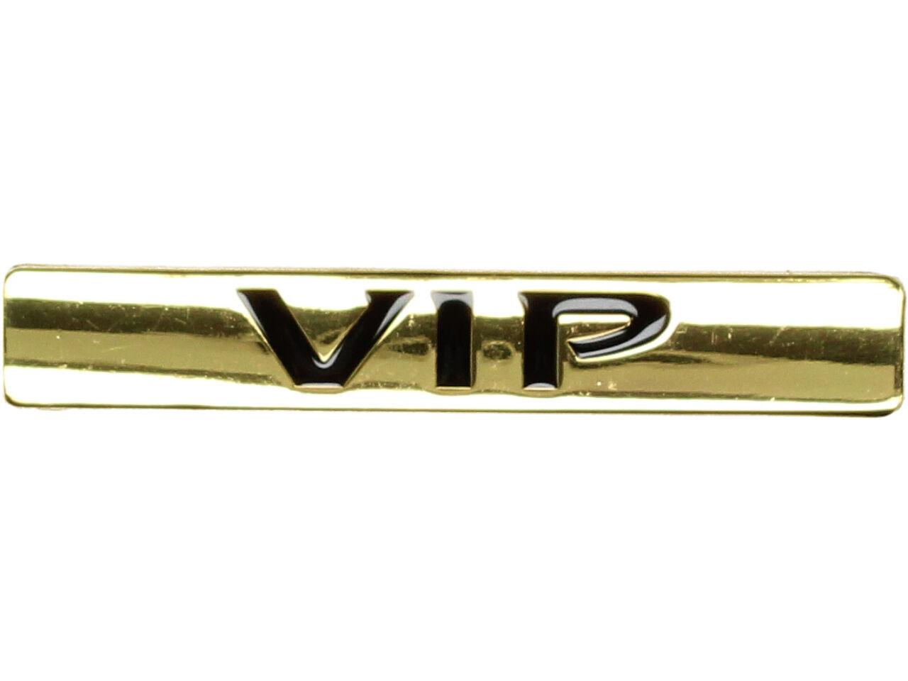 Kovová samolepka VIP 9,5cm x 1,5cm Zlatá. Tahle parádní nálepka kovová Kovová samolepka VIP 9,5cm x 1,5cm Zlatá vypadá naprosto luxusně a vylepší vzhled vašeho auta. Kvalitní Kovová samolepka VIP 9,5cm x 1,5cm Zlatá je opatřena oboustranou lepící páskou. Předností této samolepky je fakt, že vydrží podstatně delší dobu než nálepka klasická. Na kvalitní kovovou nálepku poskytujeme záruku 24 měsíců. Prohlédněte si i další kovové samolepky z naší široké nabídky.