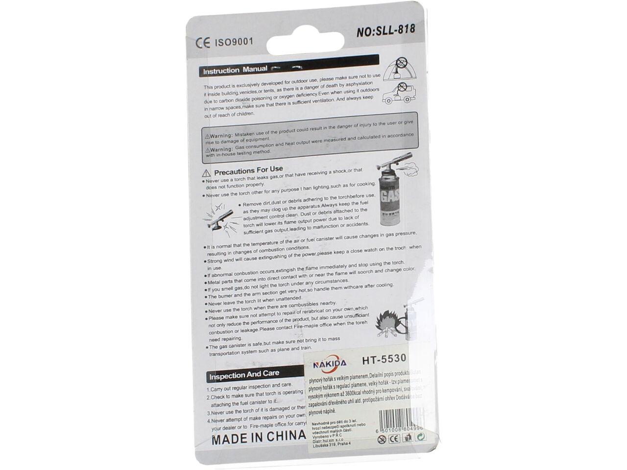 Plynový hořák hlavice Flame Gun SLL-818 specifikace: