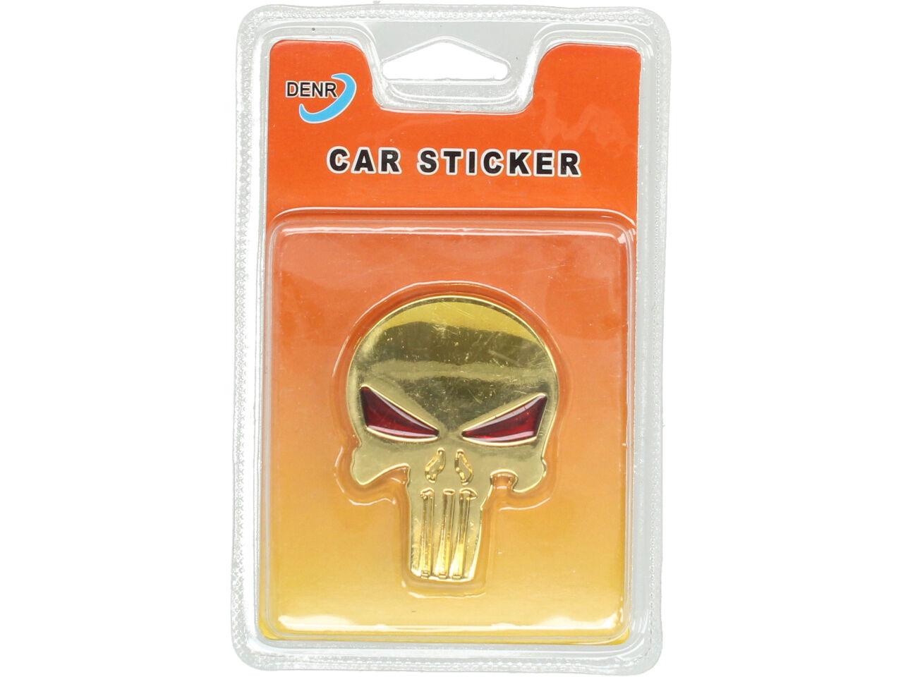 Zákazníkům to ulehčí práci: kovová samolepka Zlatá lebka s očima 4cmx6cm Kovová samolepka Zlatá lebka s očima 4cmx6cm zaručeně udělá radost všem tuningářům, majitelům a milovníkům aut..