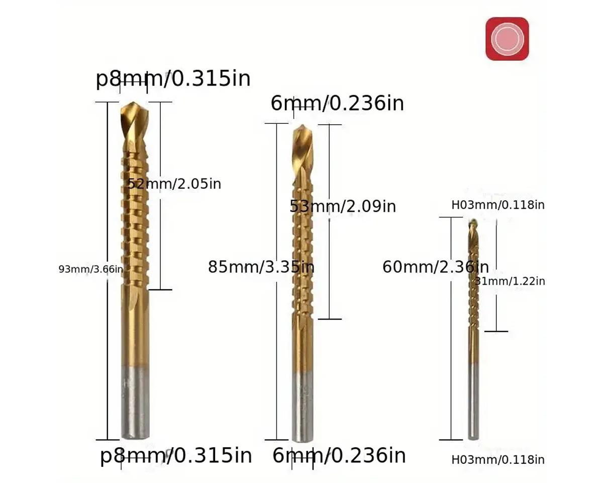 - Obsahuje 3ks stuňovitý vrták, 3ks vrták