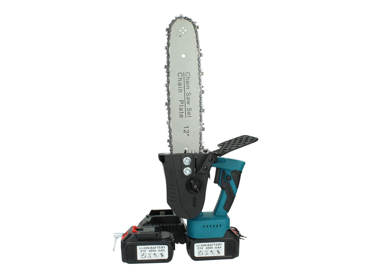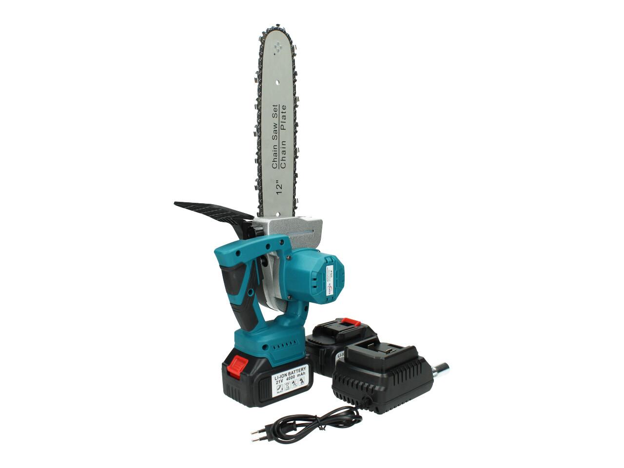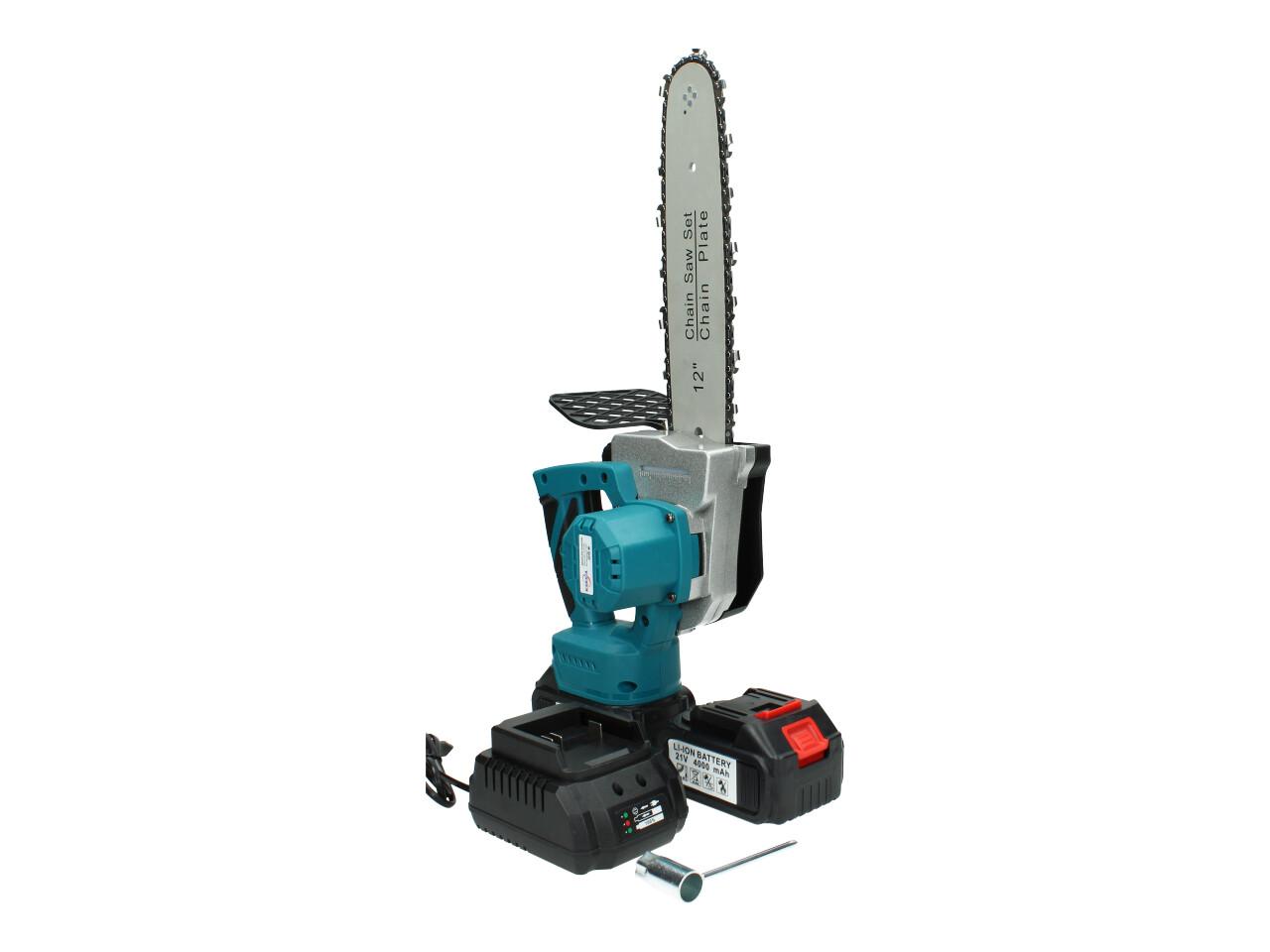 Pilka s lištou 12 palců pro řezání větších nebo špatně přístupných větví včetně 2 kusů akumulátorů, nabíječky a řetězu. Pila je vybavena bezklíčovým napínáním řetězu a přímazem lišty a řetězu tak, jako u profesionálních motových pil. Pilka je tak určena pro větší zátěž (nádobka na olej).