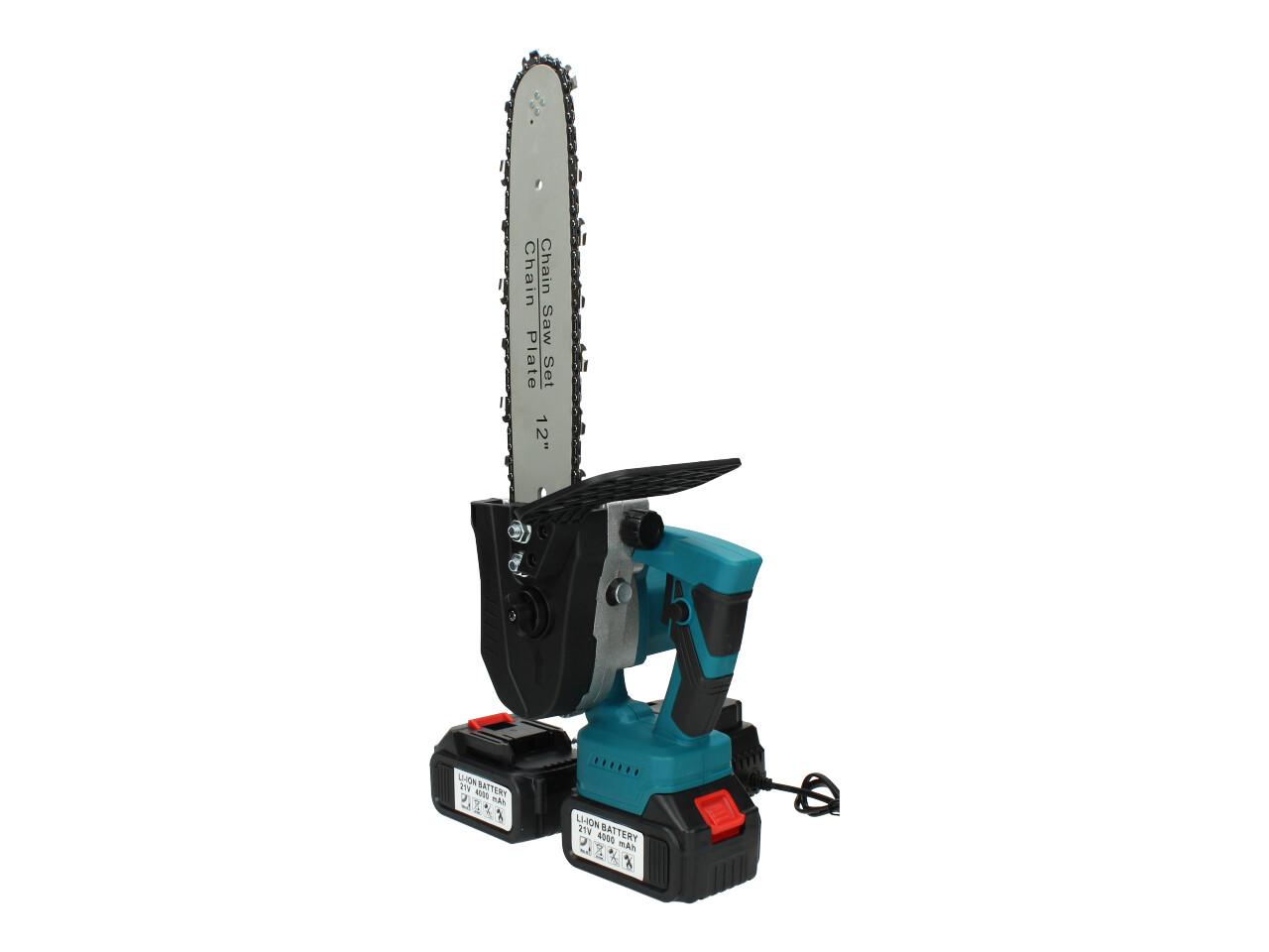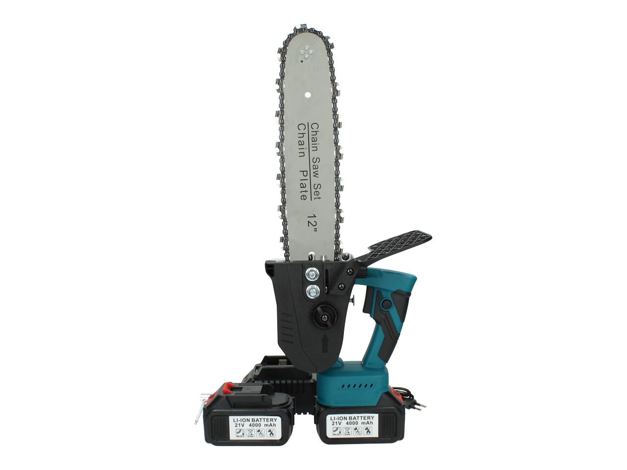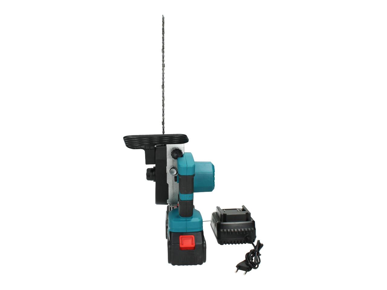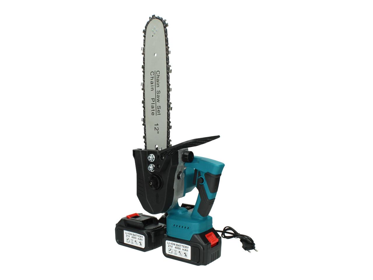 Pilka s lištou 12 palců pro řezání větších nebo špatně přístupných větví včetně 2 kusů akumulátorů, nabíječky a řetězu. Pila je vybavena bezklíčovým napínáním řetězu a přímazem lišty a řetězu tak, jako u profesionálních motových pil. Pilka je tak určena pro větší zátěž (nádobka na olej).
