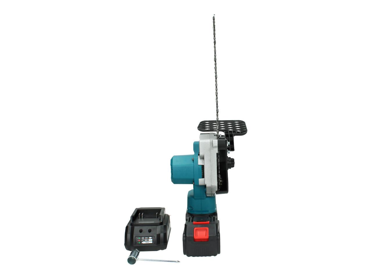- Obsah balení: pila, 2x výkonná baterie 4000mAh, nabíjčka, řetěz, klíč, šrubovák