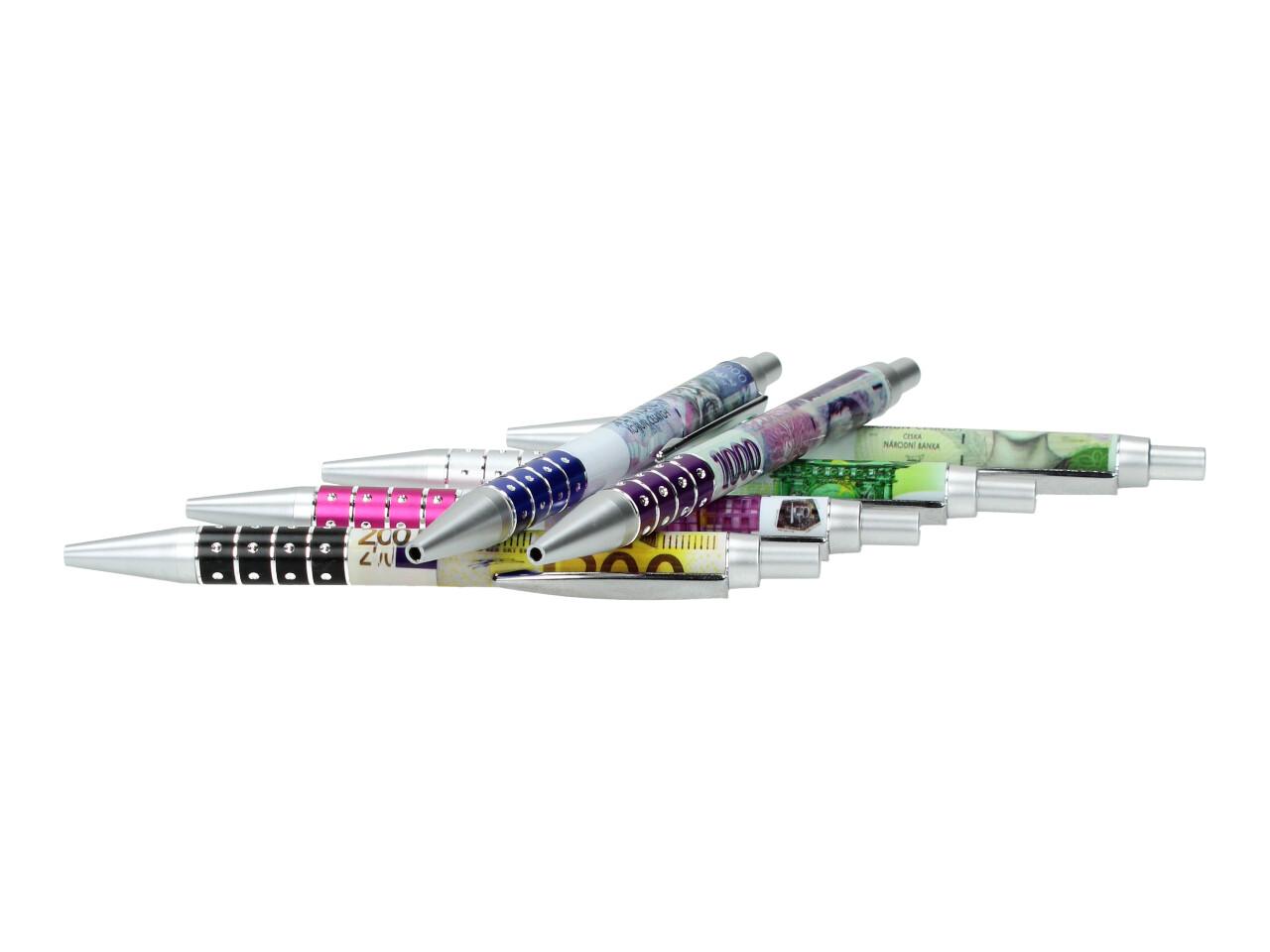 Má to smysl mít v nabídce — sada kusů propisek s motiv bankovky HT- - Propisky v motivu českých a eurových bankovek s modrým inkoustem v plastové krabičce o hodnotách , , 500EUR a , Kč Sada kusů propisek s mo….