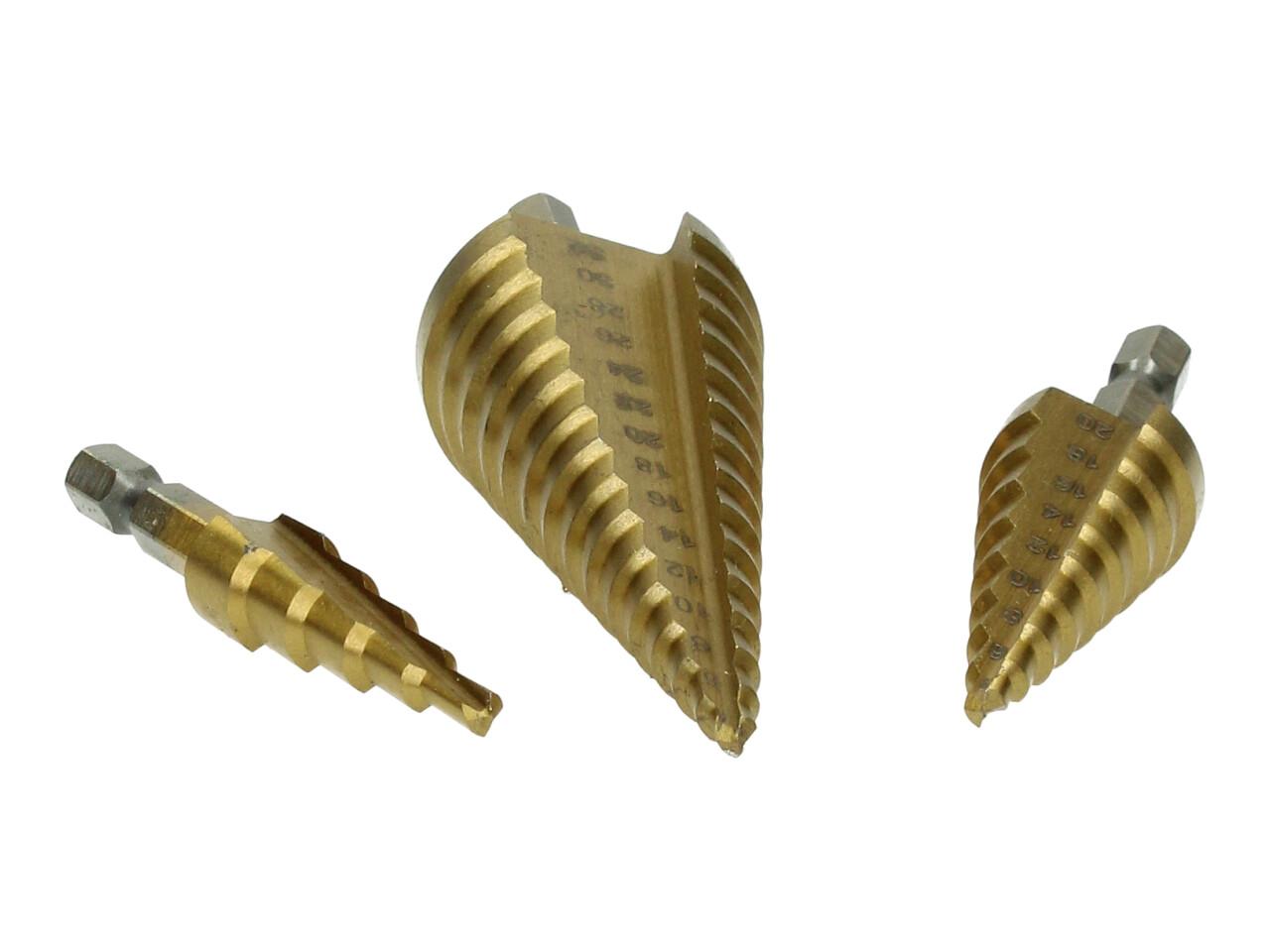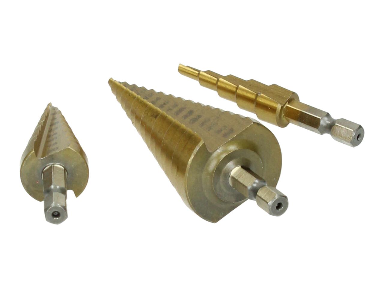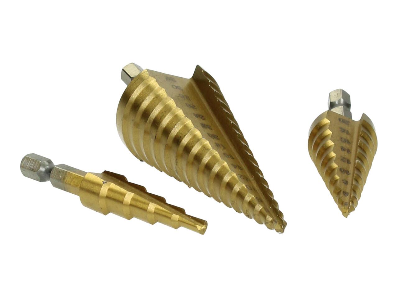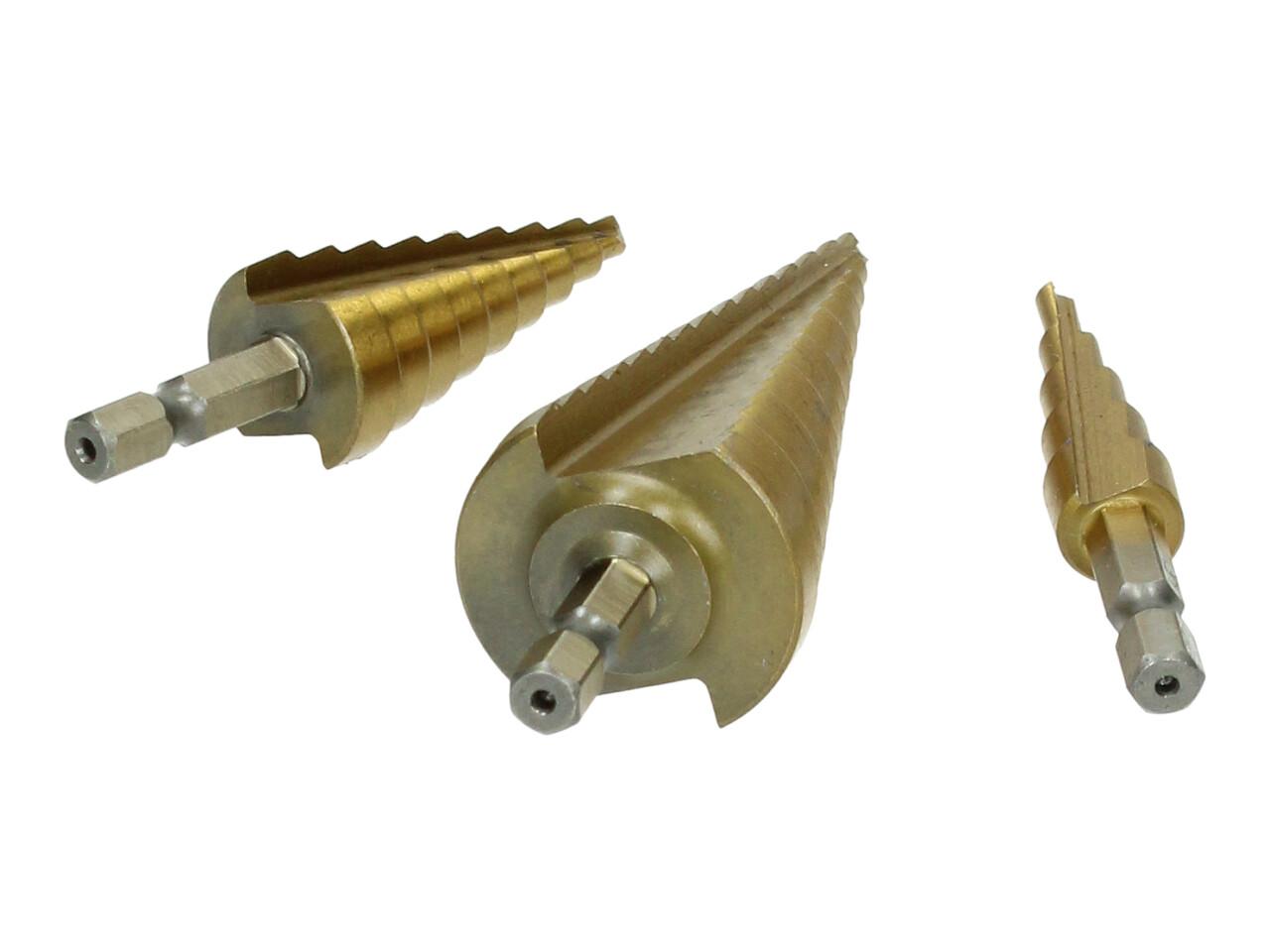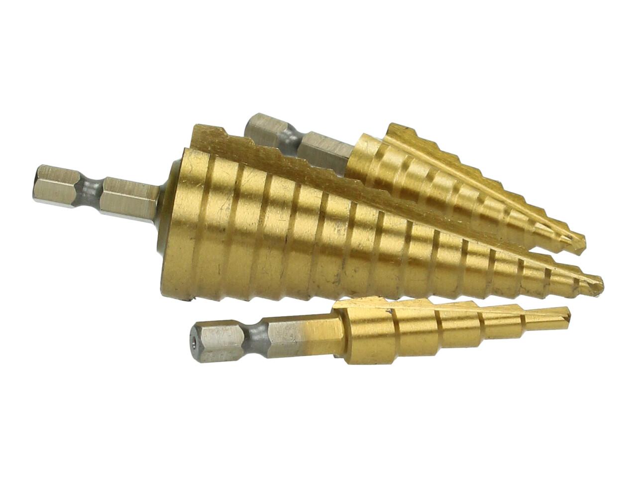Sada 3 kusy kuželový stupňovitý vrták Nakida HT-6511 specifikace: