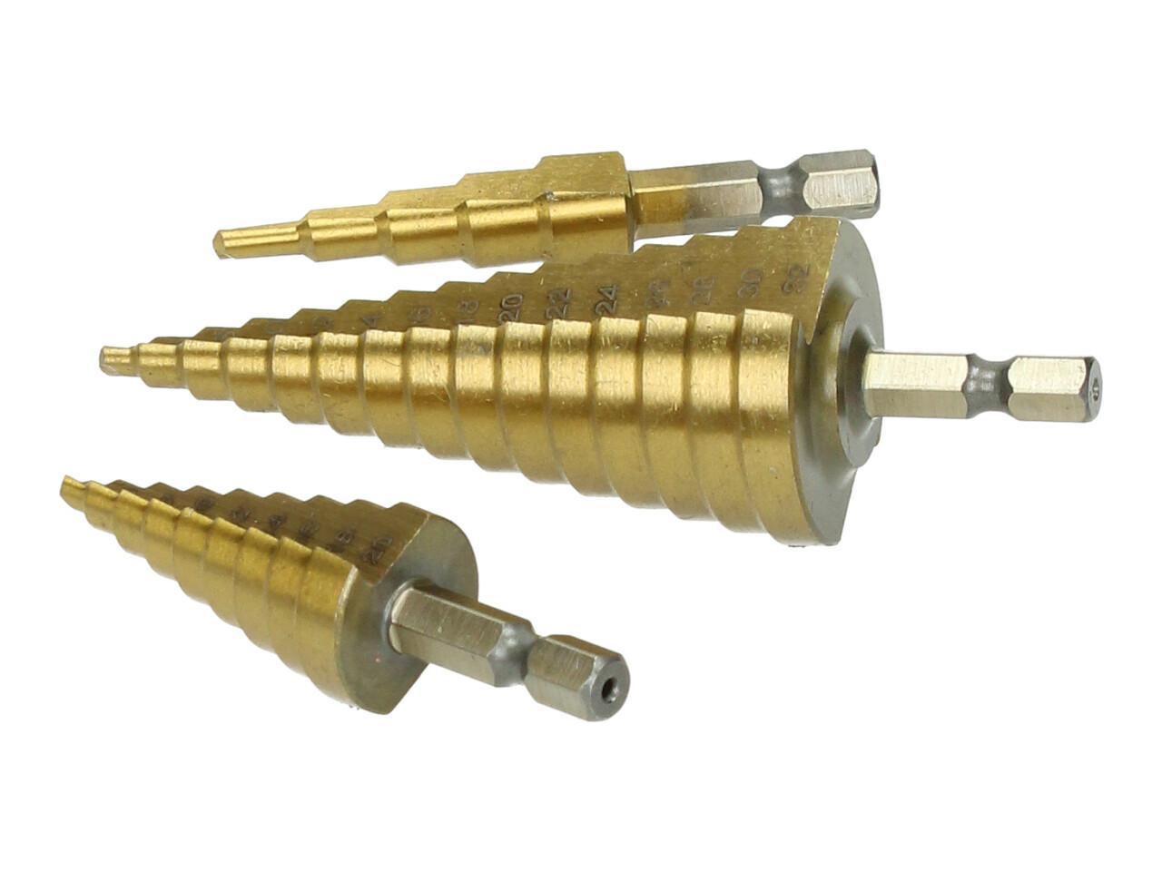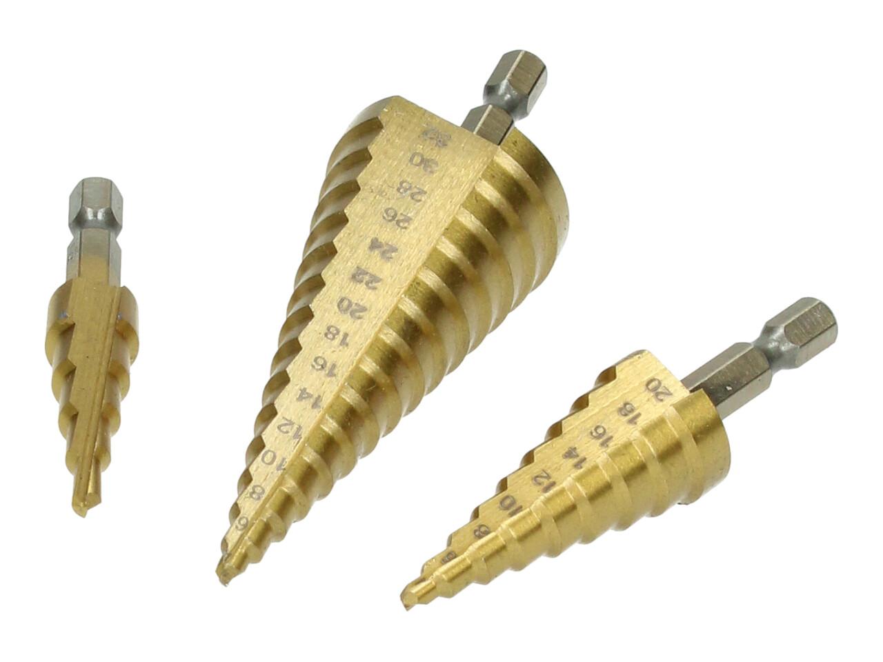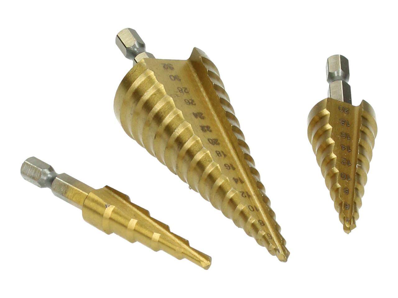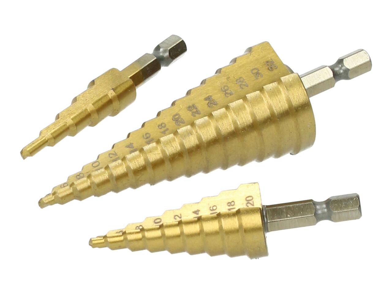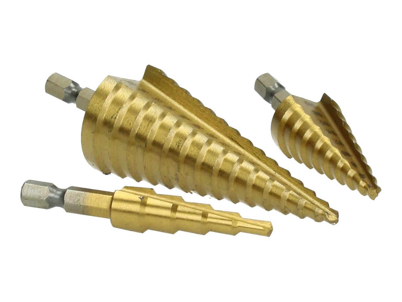 Sada 3 kusy kuželový stupňovitý vrták Nakida HT-6511 specifikace: