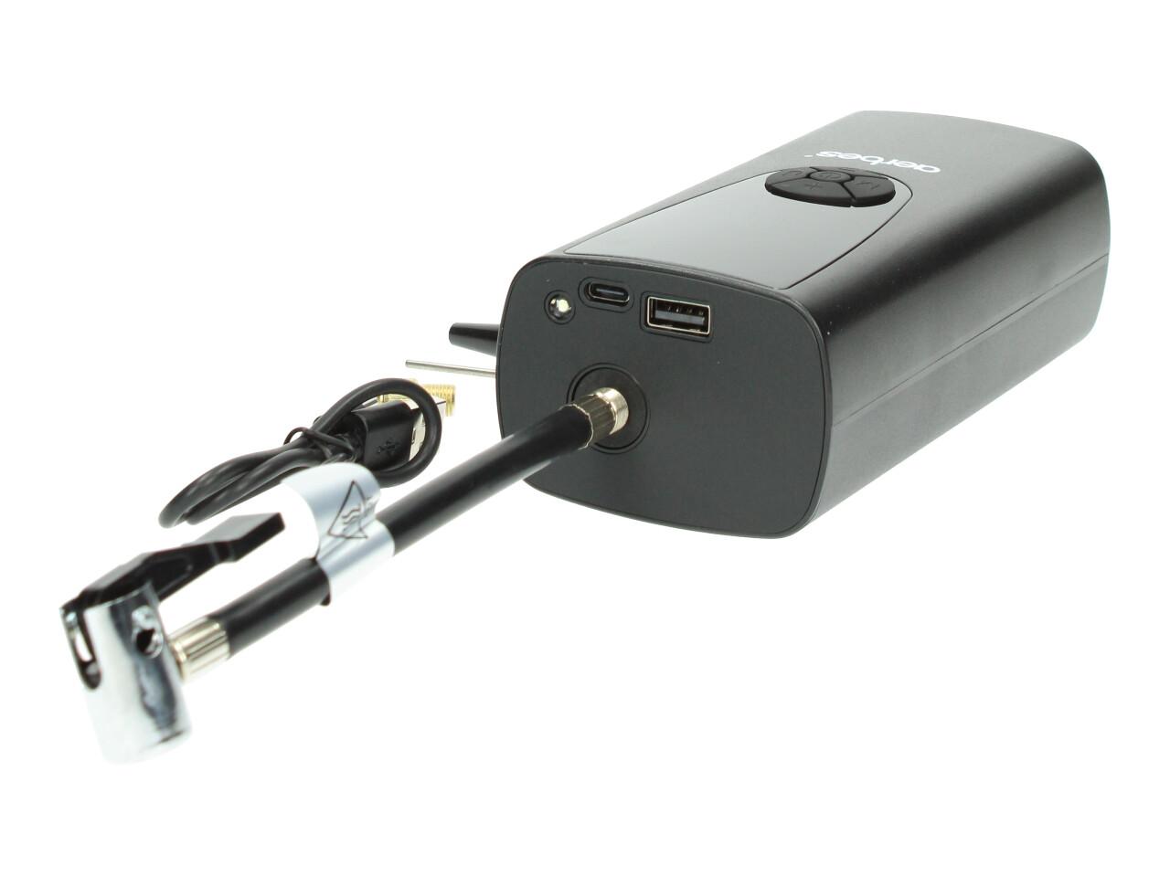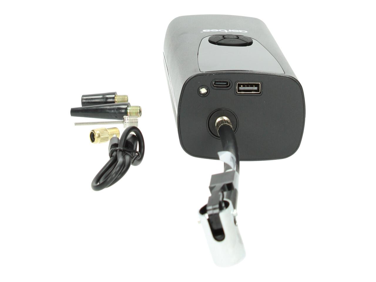Výkonný nabíjecí Aku kompresor 8000mAh Aerbes AB-CQ06 je vybaven kontrolním displejem, který informuje o stavu baterie a aktuálním foukaném tlaku. Jedná se o silný kompresor, který bez problémů nafoukne kolo od automobilu až do 3 ATm. Kompresor je nabíjen buď nabíječkou nebo C kabelem od telefonu.