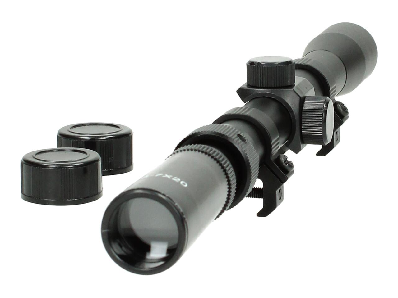 Puškohled 3-7x20 Rifle Scope obsahuje objektiv 20 mm a je vhodný na všechny druhy vzduchových zbraní s 11mm lištou. Jeho optika je určená pro rychlé zaměřování na krátké vzdálenosti, a uživateli poskytuje dobrou viditelnost i za soumraku či mlhy. V optice má záměrný TV křížek, díky kterému máte lepší periferní vidění a následně i přesnost střelby. Všechny části optické soustavy jsou opatřeny vícevrstvým povlakem.