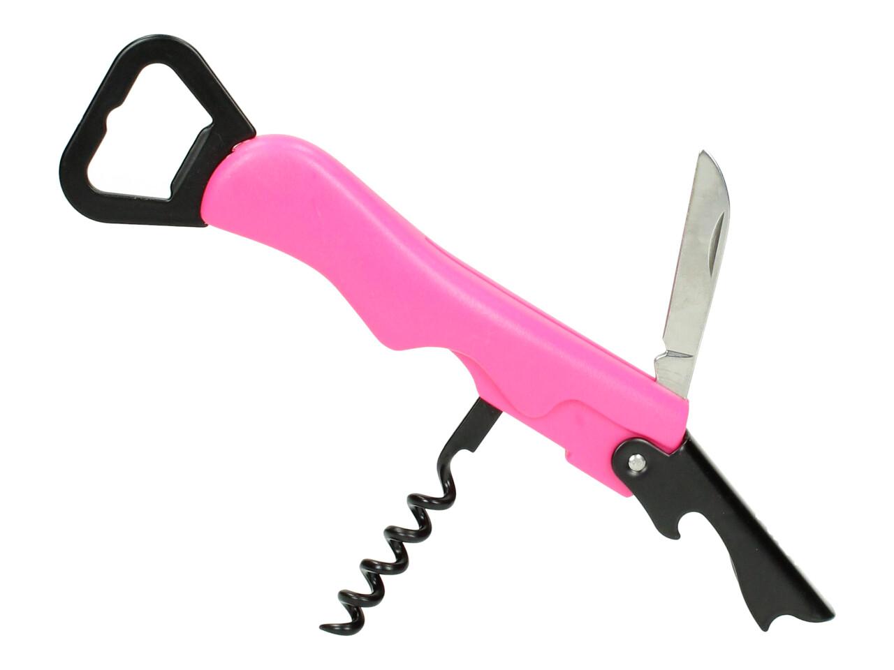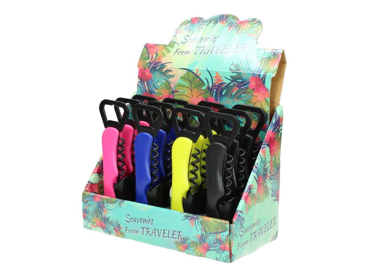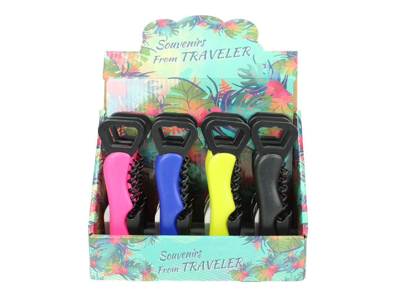 Designový otvírák Traveller je vyrobený z odolného plastu a díky tvarování je příjemný do ruky. Na výběr z několika barev. Otvírák má vývrtku, otvírák na pivní lahve, otvírák na obyčejné lahve a skládací nůž.