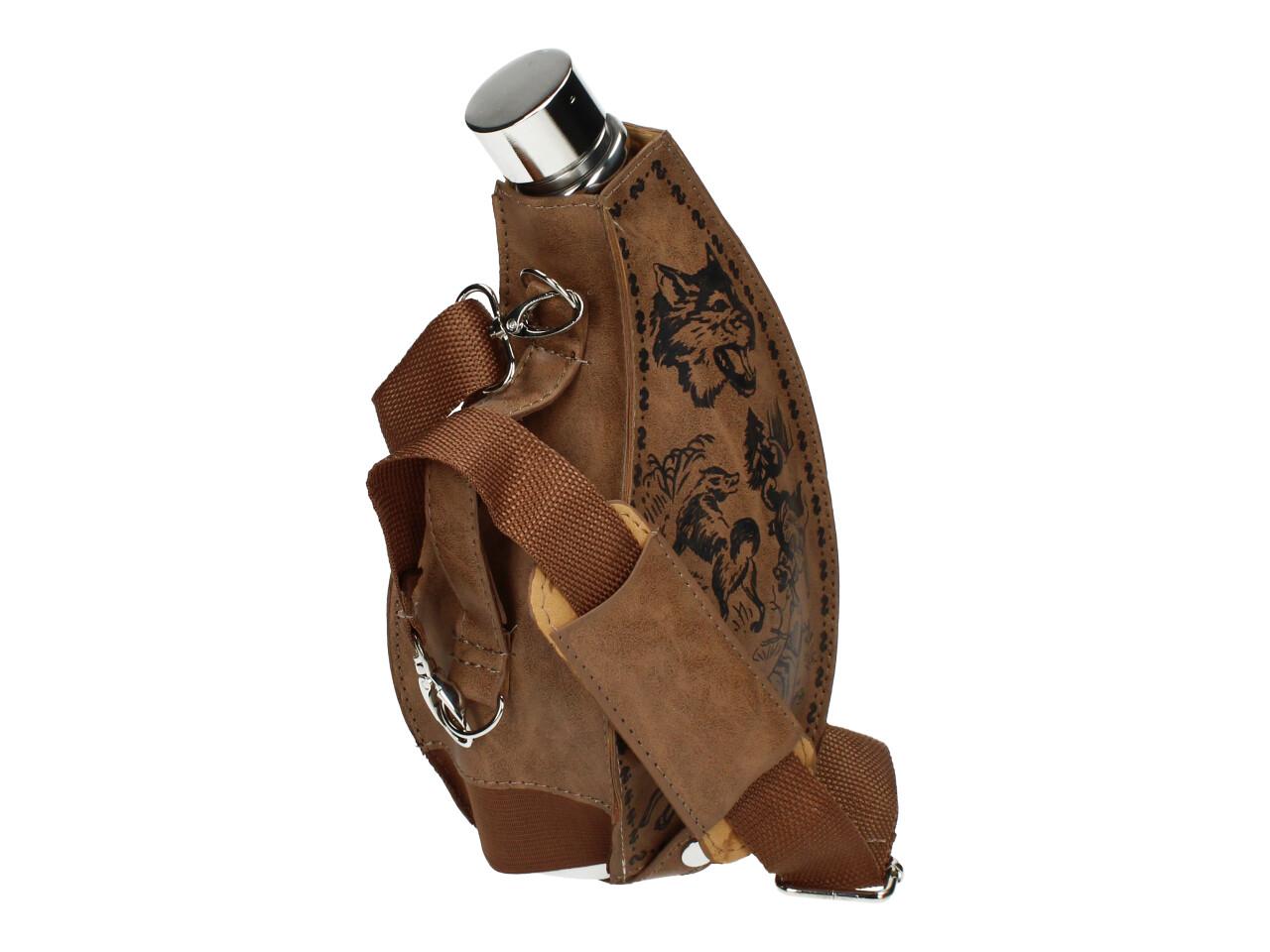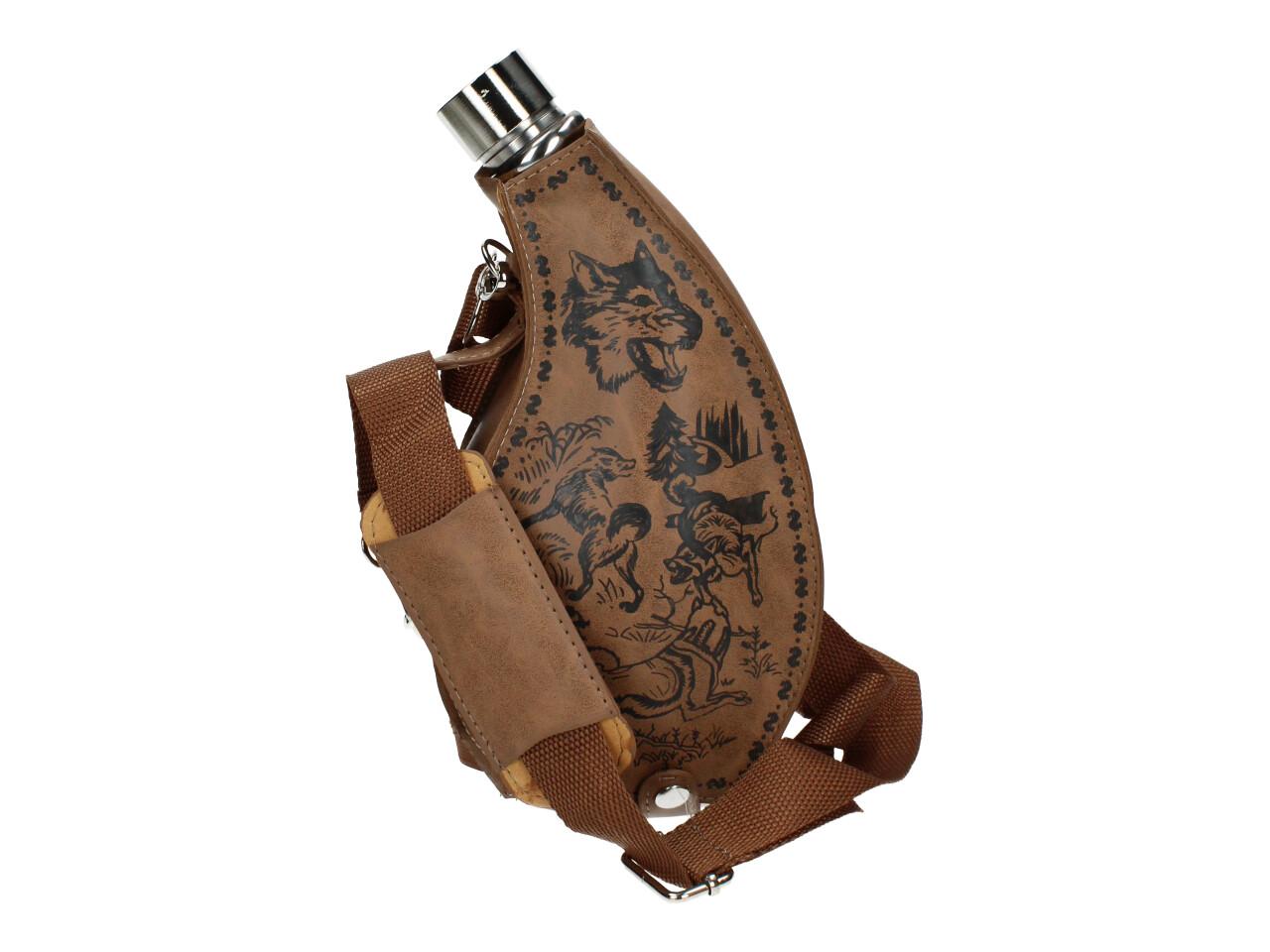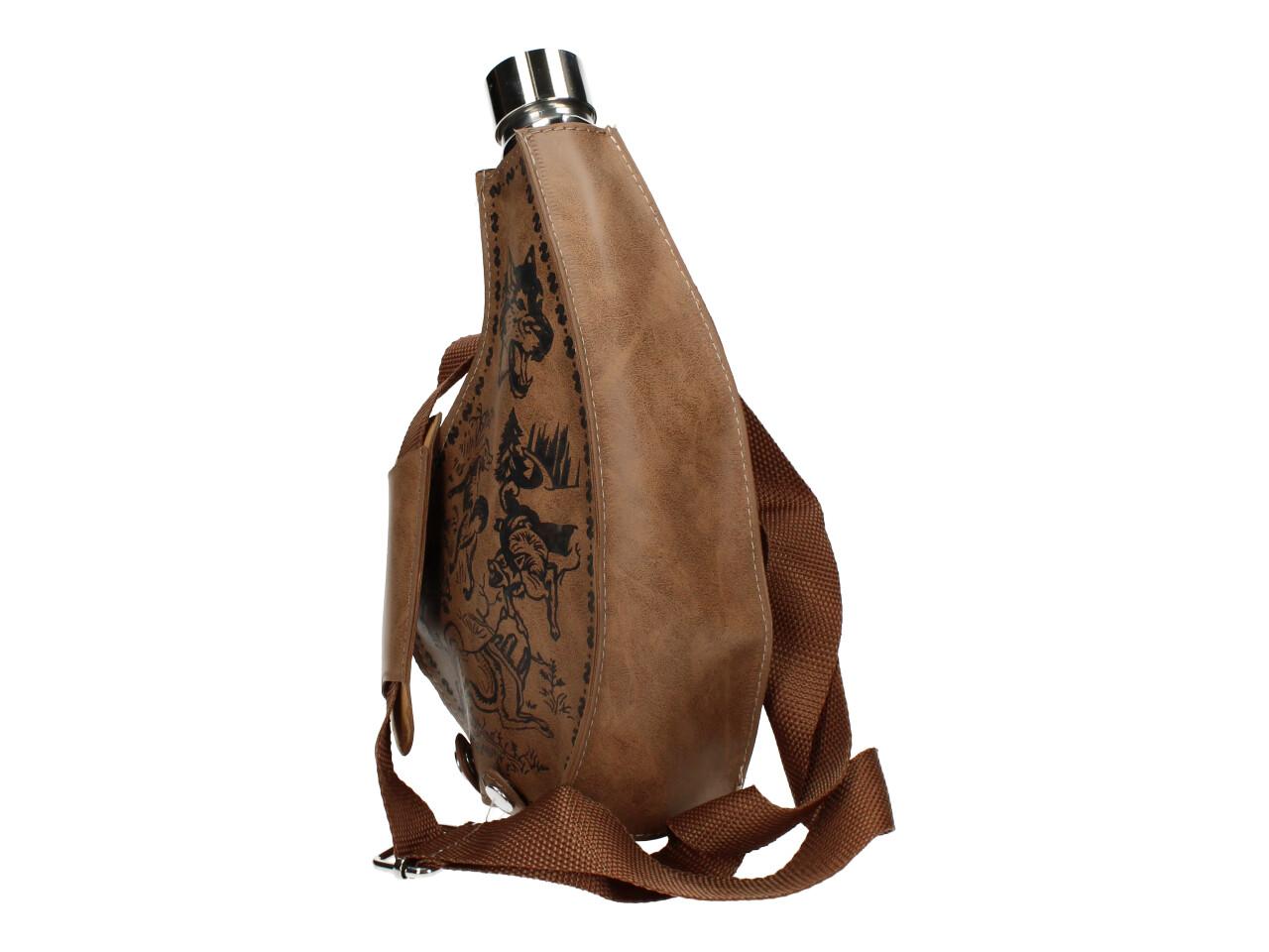 Má to smysl mít v nabídce — placatka na alkohol v koženém hnědém pouzdře litru Placatka přes rameno je ideální na delší cesty, na tůry, čundry, festivaly i pochody..