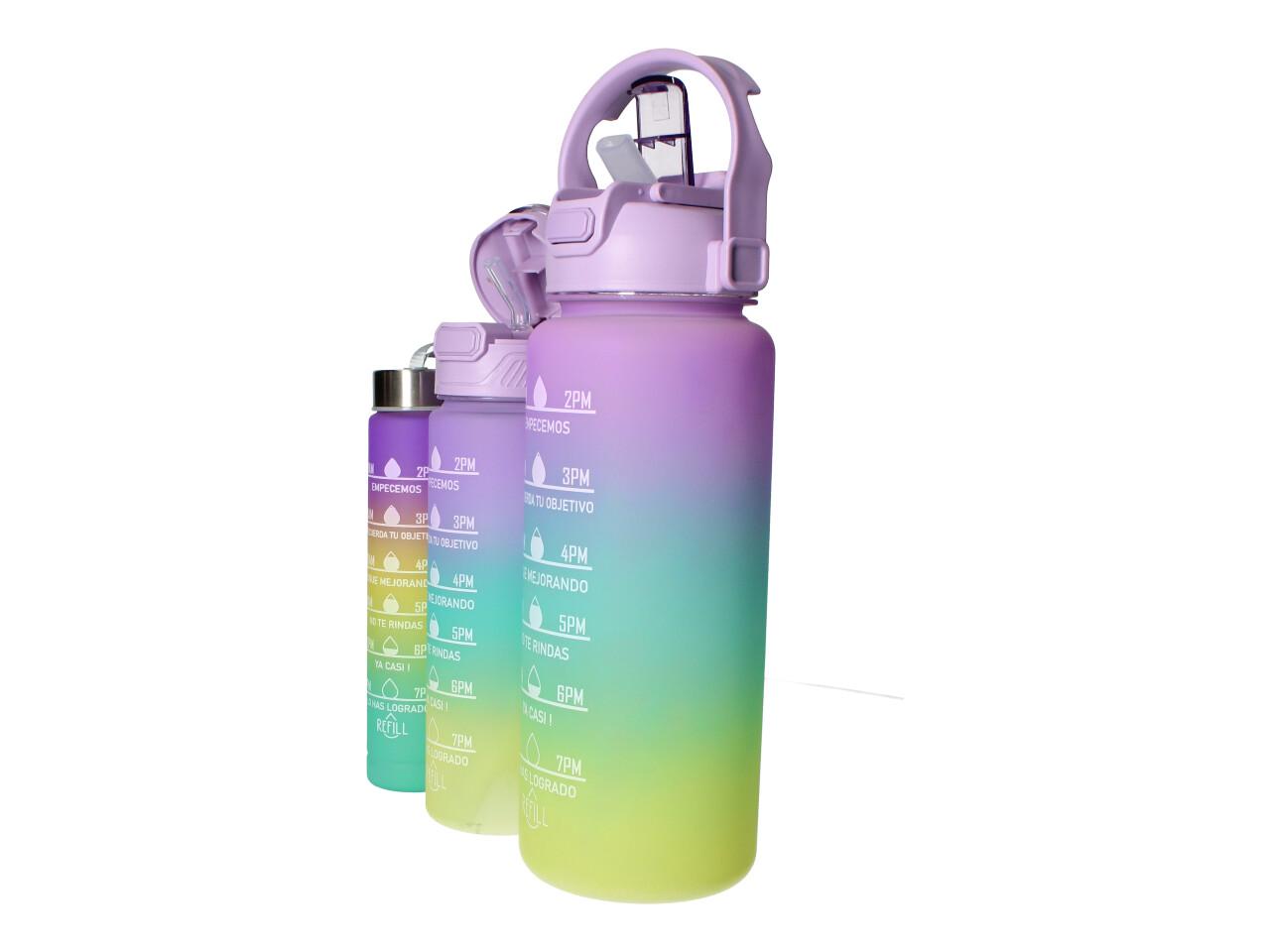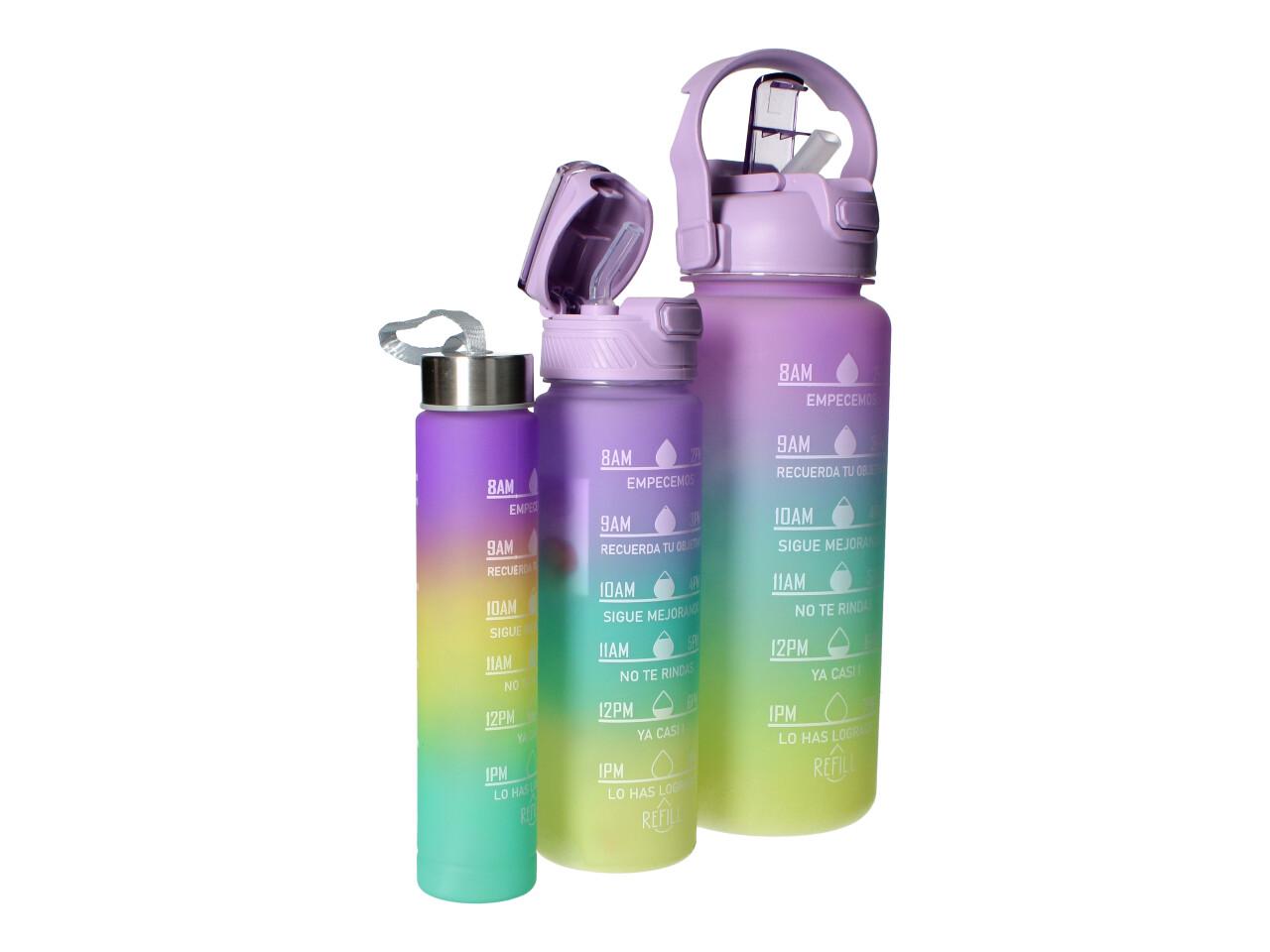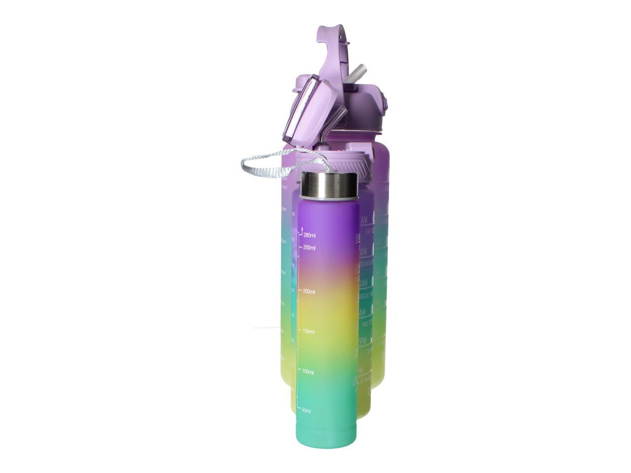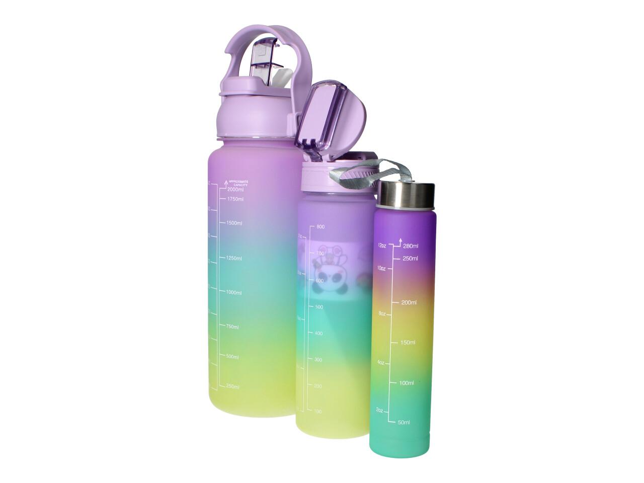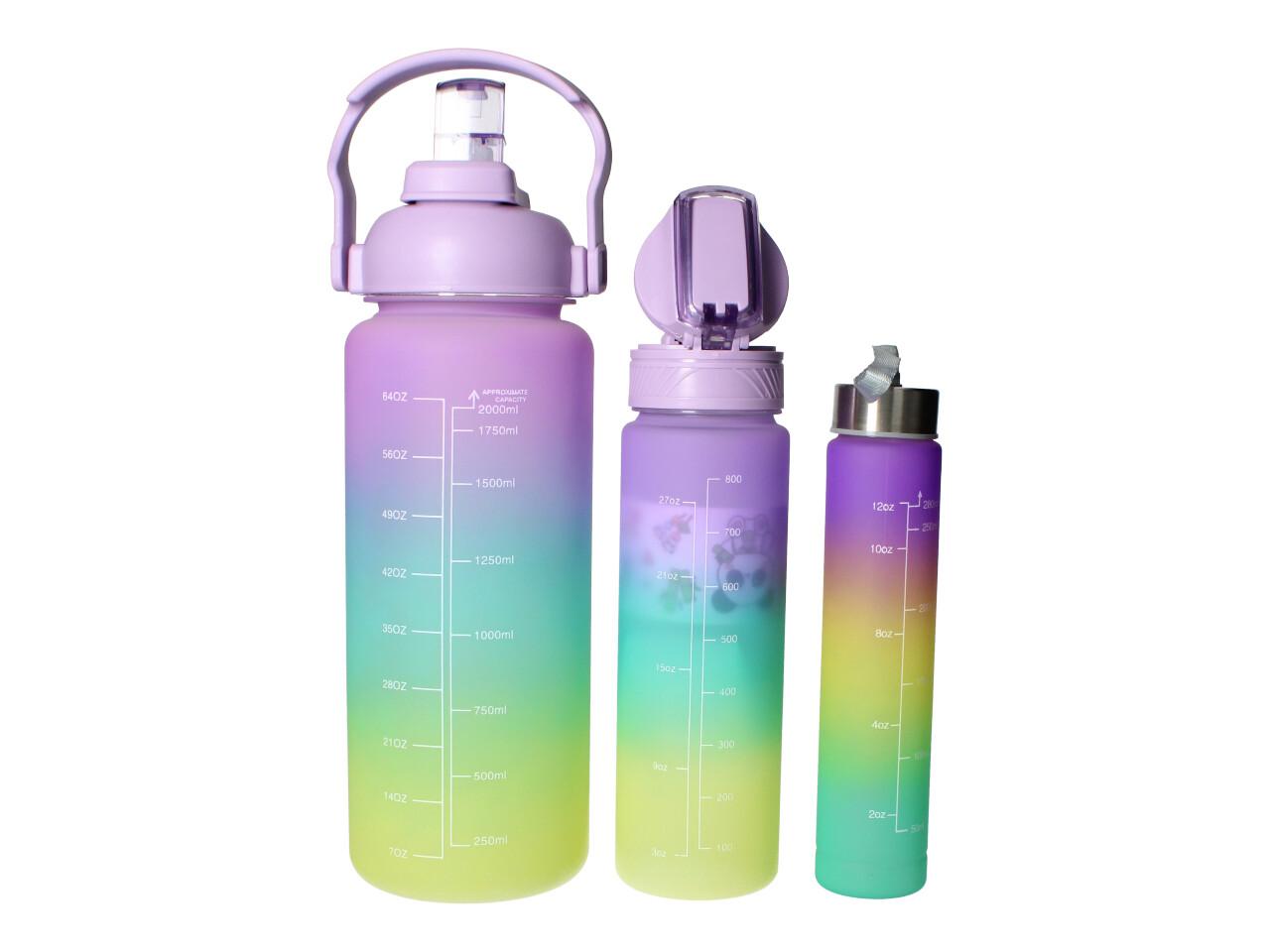 Motivační lahve na vodu 3 ks, 2000ml, 900ml, 300ml fialovozelená specifikace: