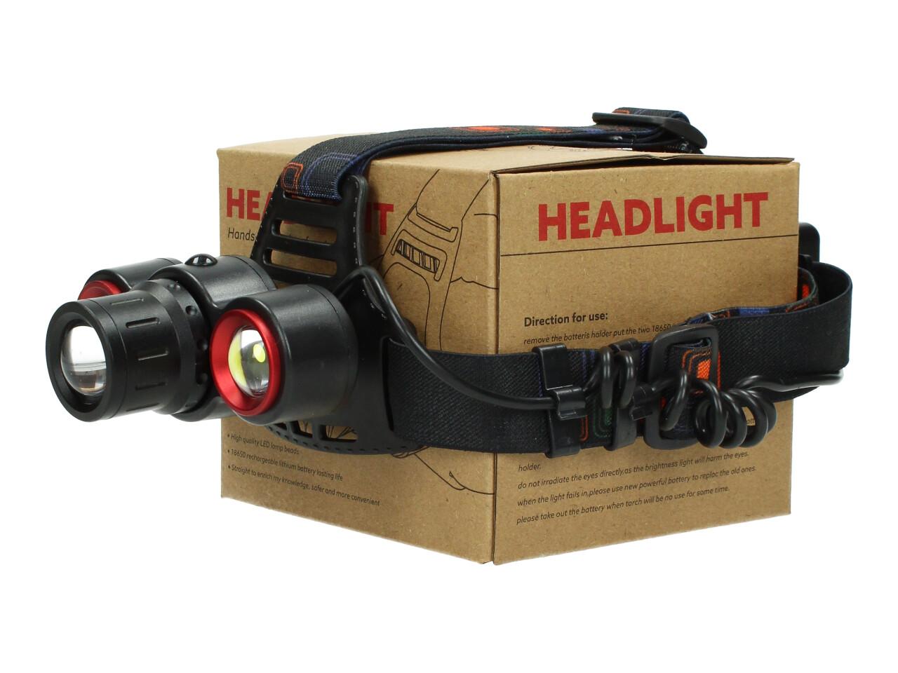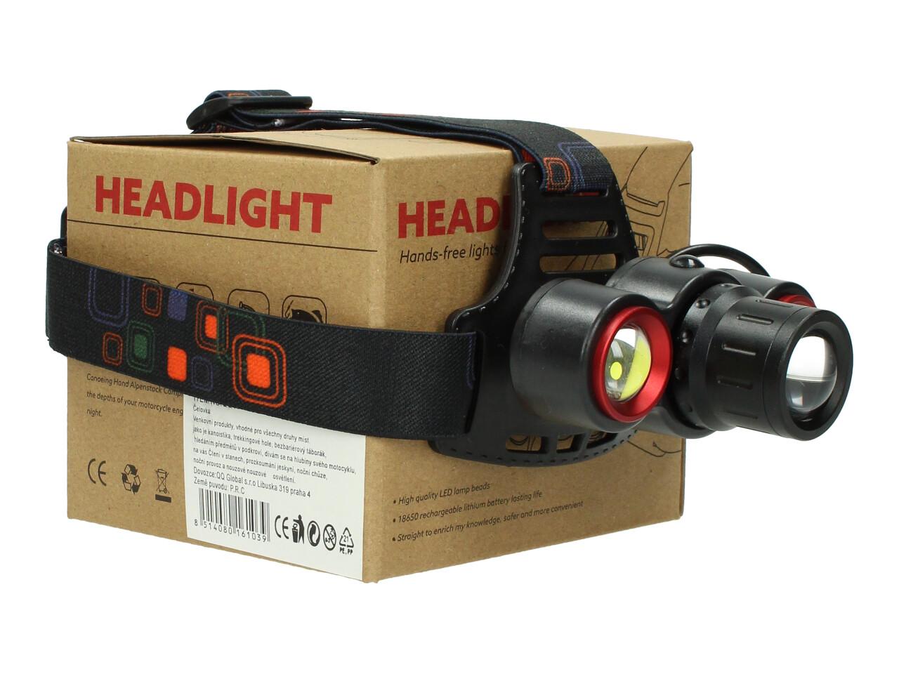 Nabíjecí výkonná čelovka HEADLIGHT se třemi světlomety a funkcí ZOOM specifikace: