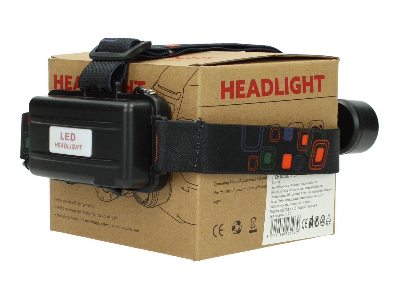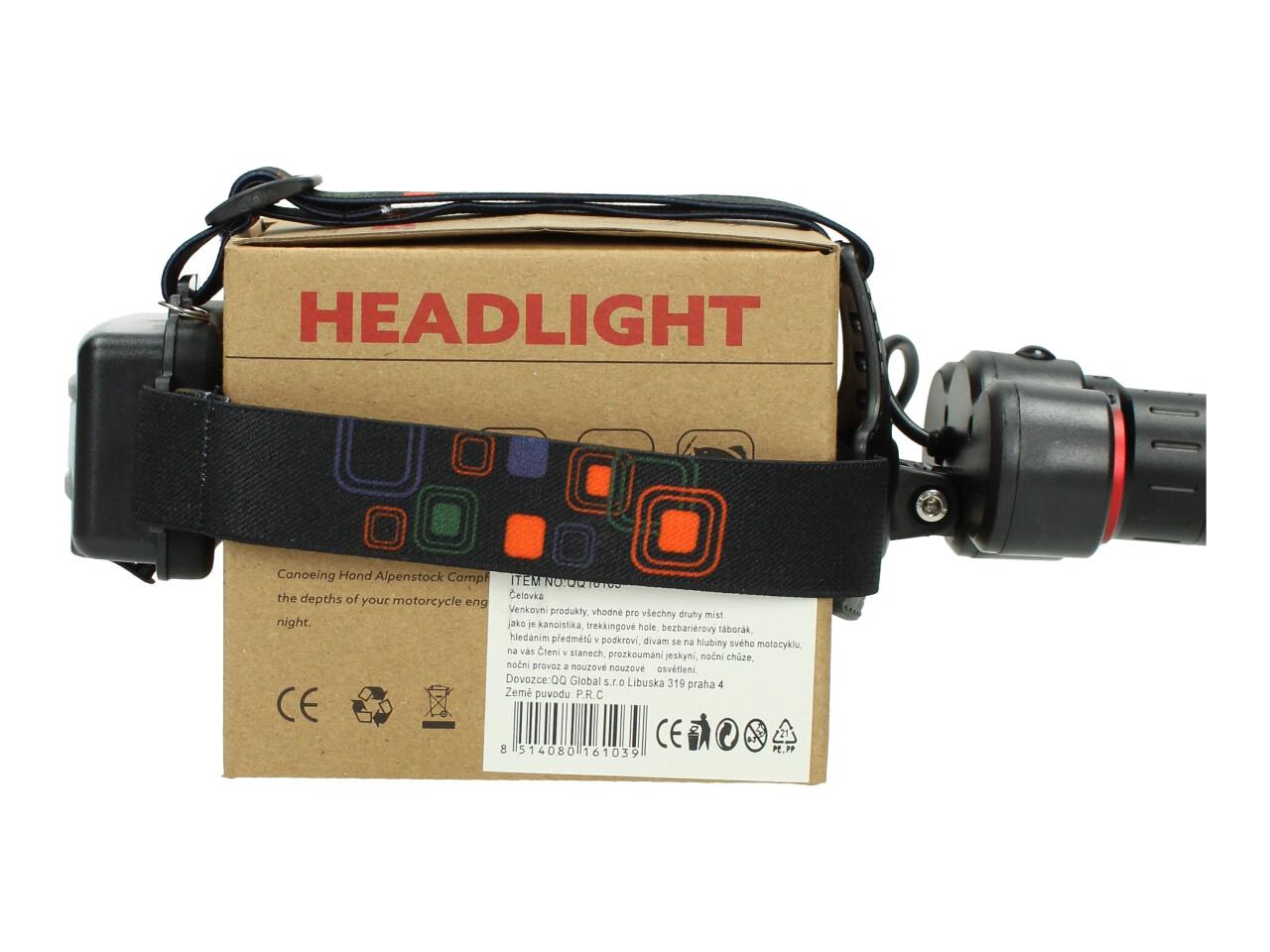 Nabíjecí výkonná čelovka HEADLIGHT se třemi světlomety QQ13103