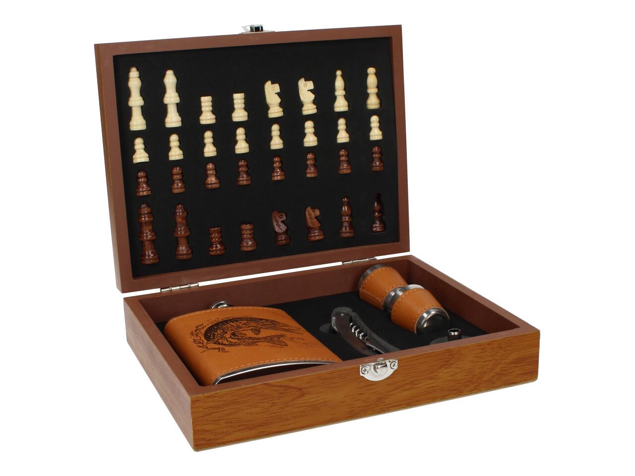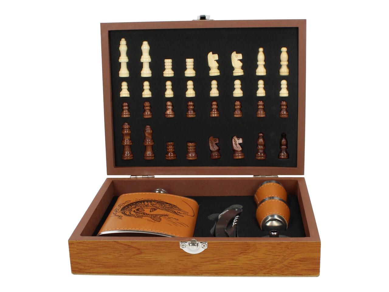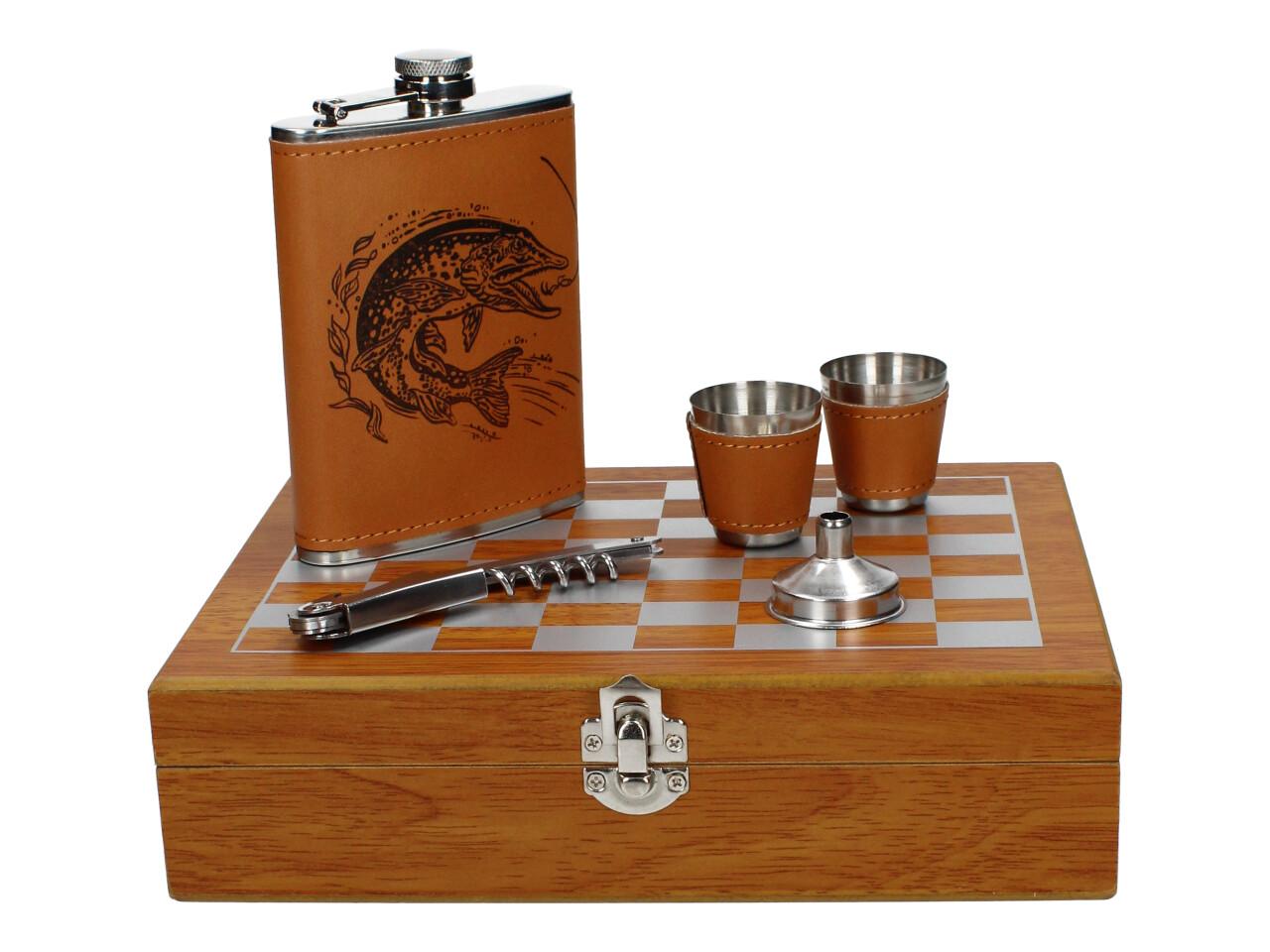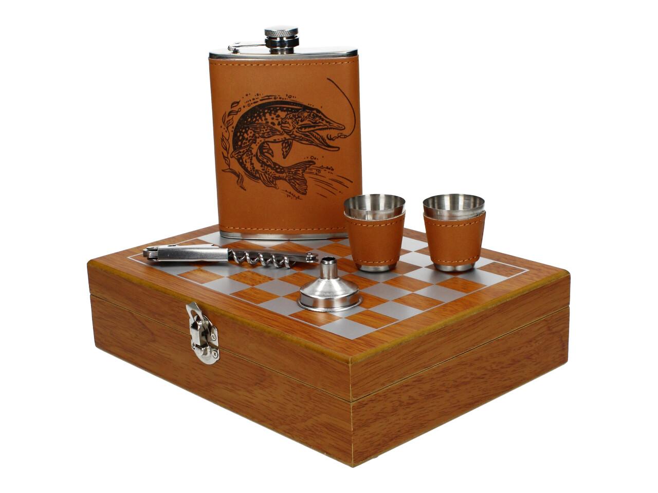 Hlavní stránka > E-shop > Domácí potřeby > Placatky a sady > Dárková sada ŠACHOVNICE s panáky a otvírákem 3v1 motiv Štika 3v1