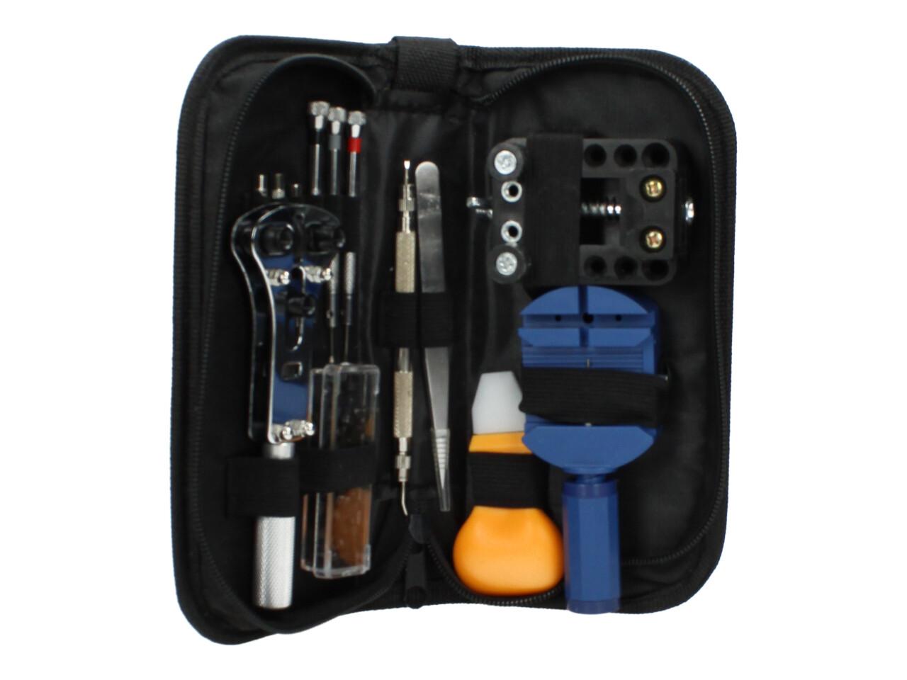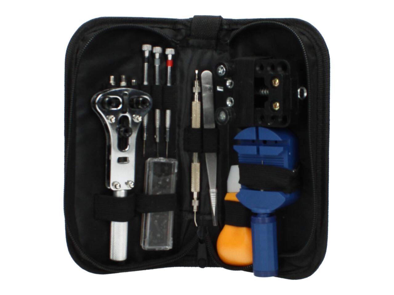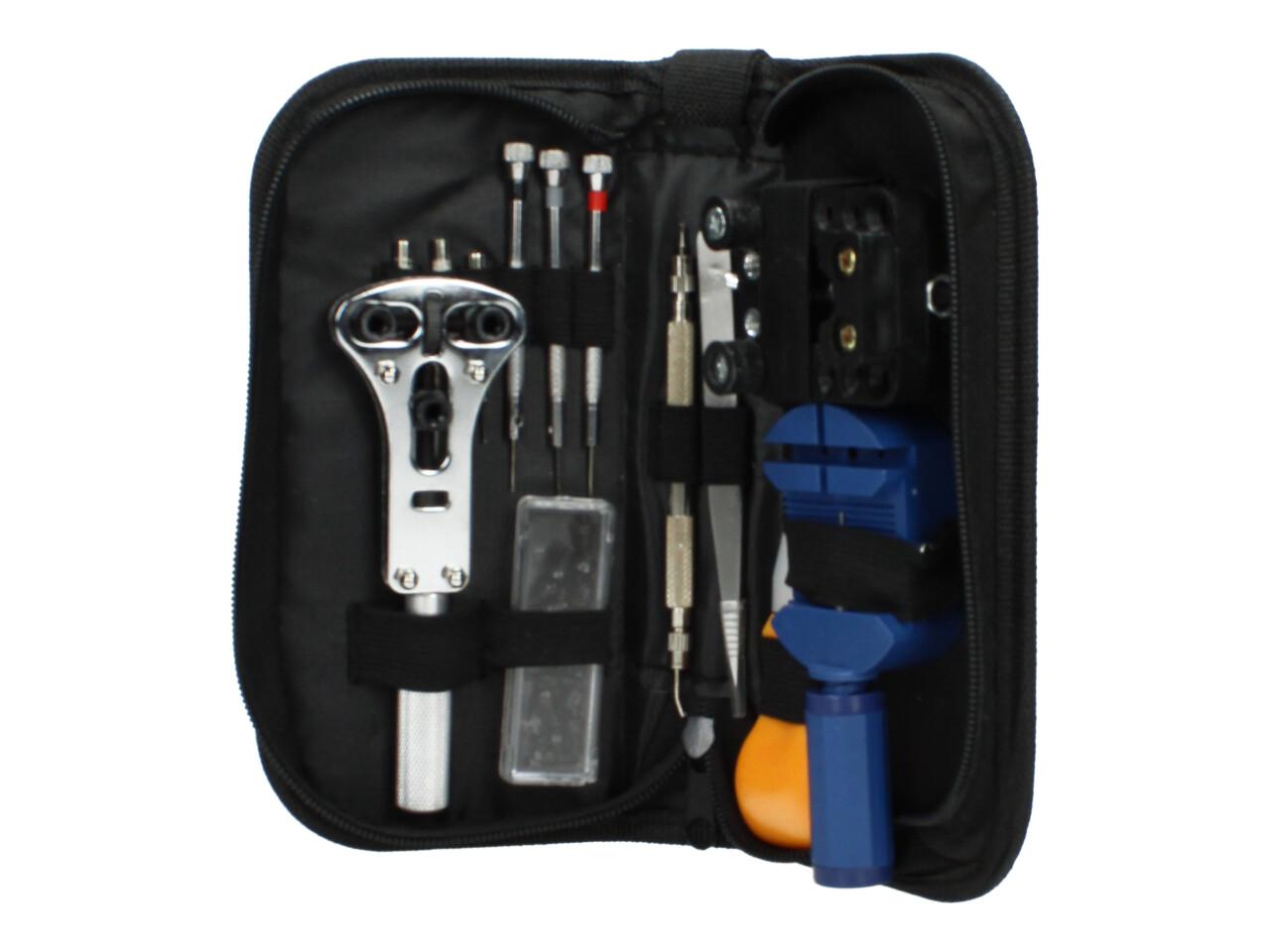 Tato profesionální sada na opravu hodinek je ideálním nástrojem pro hodináře, kutily i každého, kdo si chce své hodinky opravit doma. Sada obsahuje vše potřebné pro výměnu baterií, zkracování řemínků, otevírání zadních krytů a další drobné opravy hodinek.