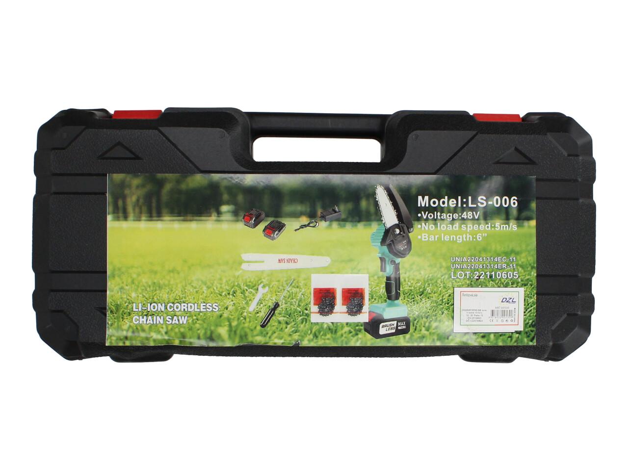 Akumulátorová Mini Pila LS-006 (6 palců) s 2x 7500mAh Li-ion bateriemi je ideální pomocník pro zahradnické práce a neměla by chybět v žádné kůlně. Snadno s ní prořezáte keře, túje, odříznete větve a mnoho dalšího.