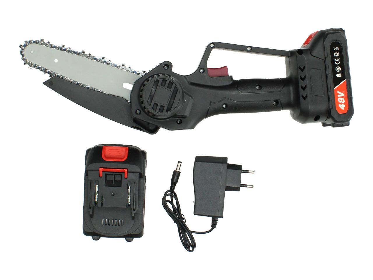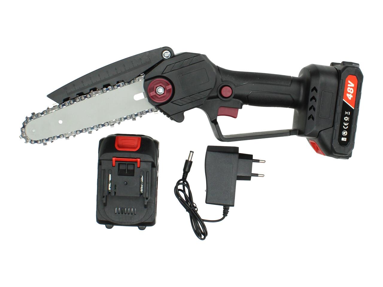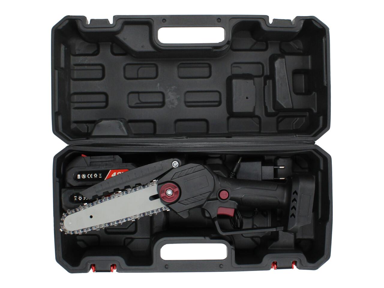 - - Obsah balení: pila, 2x výkonná baterie 2000 mAh, nabíječka, řetěz