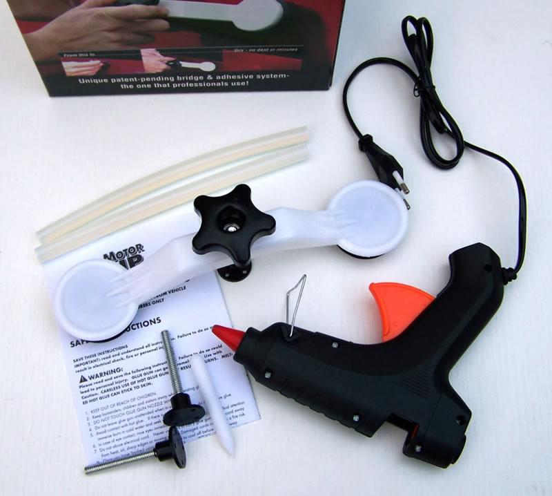 Sada na opravu promáčklin karoserie má velmi snadné použití. používá se jak v profesionálních dílnách, tak i v domácích garážích pokud k poškozenému místu nemáte přístup z druhé strany pro jeho klasické vyklepání. Tato revoluční sada na opravu promáčklin karoserie Vám ušetří mnoho peněz za opravu v odborné dílně. Proč platit někde za to, co si můžete udělat doma? Neváhejte a kupte si tuto revoluční opravnou sadu pro opravu promáčklin na karoserii.