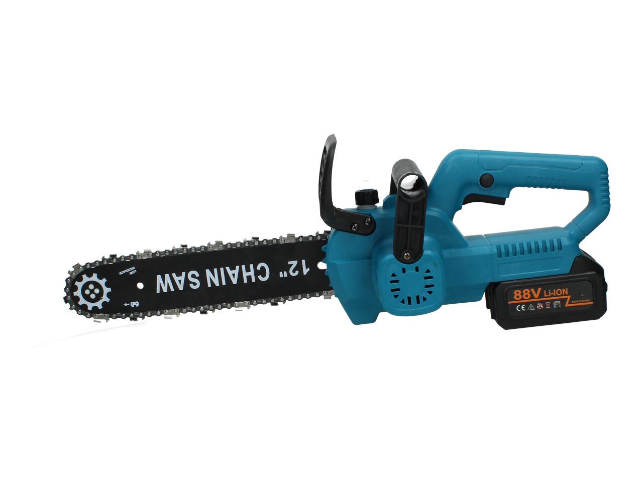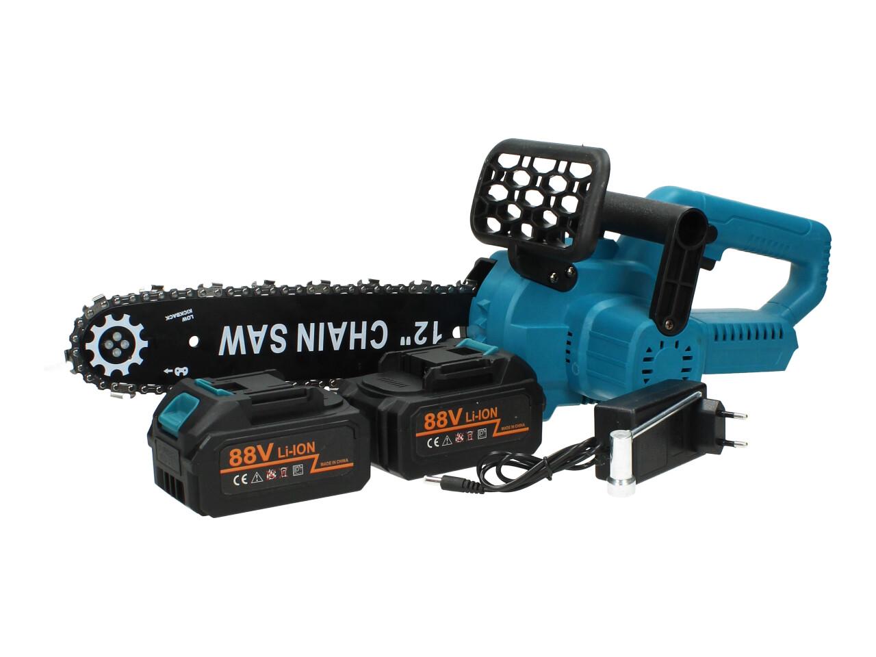 Aku pila s přímazem řetězu s lištou o délky 12 palců včetně nabíječky a 2x akumuklátorů v kufříku